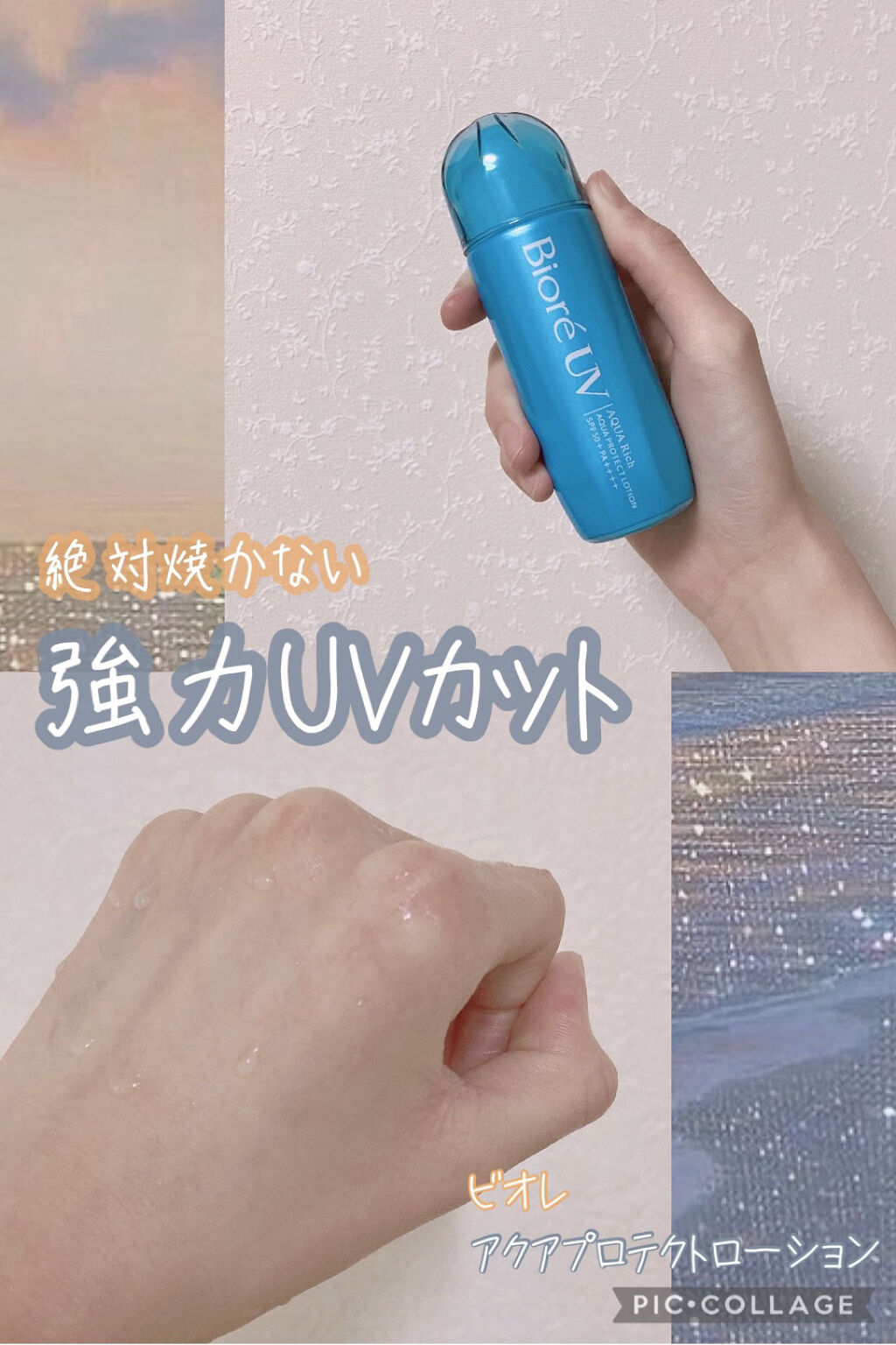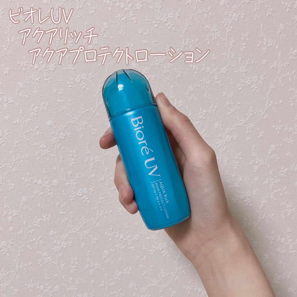 ビオレUVアクアリッチアクアプロテクトローションを使ってみたよ🩵SPF50+PA++++顔とからだ両方使用可!メイクのりをUPさせてくれて、水光肌みたいなツヤ感も出るから気に入ってる🩵UVカット成分が含まれたアクアカプセルが入ってるよ✨想像よ...