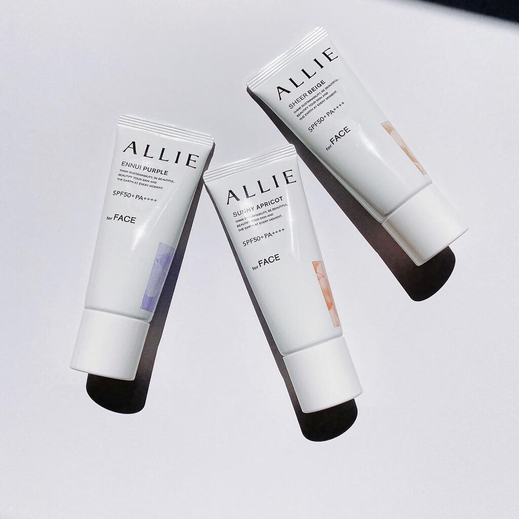- 世界を想う 美しさつづく*1 日やけ止め おでかけも、マスクを外す機会も増える毎日に。 一部の国・地域・ビーチの規制に配慮した設計のビーチフレンドリー処方。 これ 1 本で、UV カット&顔色補整効果でクマ・くすみ・色ムラまでカバー! テカりにくく、くずれにくいノーファンデ UV*2 【ENNUI PURPLE】 くすみや毛穴をカバー 儚げな透明感のある顔印象続く 澄んだ気分を誘う 紫陽花しずく&セージの香り 【SUNNY APRICOT】 クマや毛穴をカバー いきいきとした血色感のある顔印象つづく 思わず出かけたくなる アプリコット&金木犀の香り 【SHERR BEIGE】 色ムラや毛穴をカバー 均一で抜け感のある顔印象つづく 自然で飾らない シトラスウッディ&パチュリの香り ●一部の国・地域・ビーチの規制に配慮した設計の「ビーチフレンドリー処方」 ●SPF50+・PA++++ ●汗・水 こすれに強く落ちにくい フリクションプルーフ・スーパーウォータープルーフ ●ベタつきにくい感触がつづく ●テカりにくくキレイな肌仕上がりがつづく ●環境に配慮した素材を使用したパッケージ採用 ●美容液成分(保湿)ヒアルロン酸Na配合 ●顔用 ●普段のメイククレンジングで落とせる ●マスク・タオル等につきにくい ●化粧下地効果 *1 スキンケア効果またはメイクアップ効果による肌仕上がりのこと *2 ファンデーション未使用時でも、自然なベースメイクが仕上がる日やけ止めのこと *3 チリ・ほこり・PM2.5・花粉等すべての微粒子汚れの付着を防ぐわけではありません 01:ENNUI PURPLE パープル 02:SUNNY APRICOT アプリコットピンク 03:SHEER BEIGE ミルキーベージュ