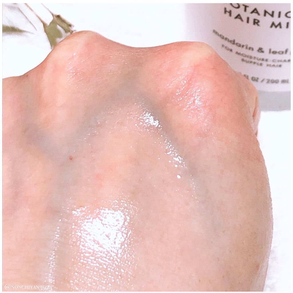 - 高純度オリーブスクワラン* 配合で、髪を集中美容ケアし、感動の指通りへ。 髪の水分油分バランスを整え、さらさらもしっとりも更になりたい仕上がりに。 ■ ボタニカルヘアミスト ✔︎ 保湿と補修で、柔らかくスタイリングしやすい髪へ ✔︎ 爽やかでみずみずしいマンダリンとリーフグリーンの香り * スクワラン(保湿成分)