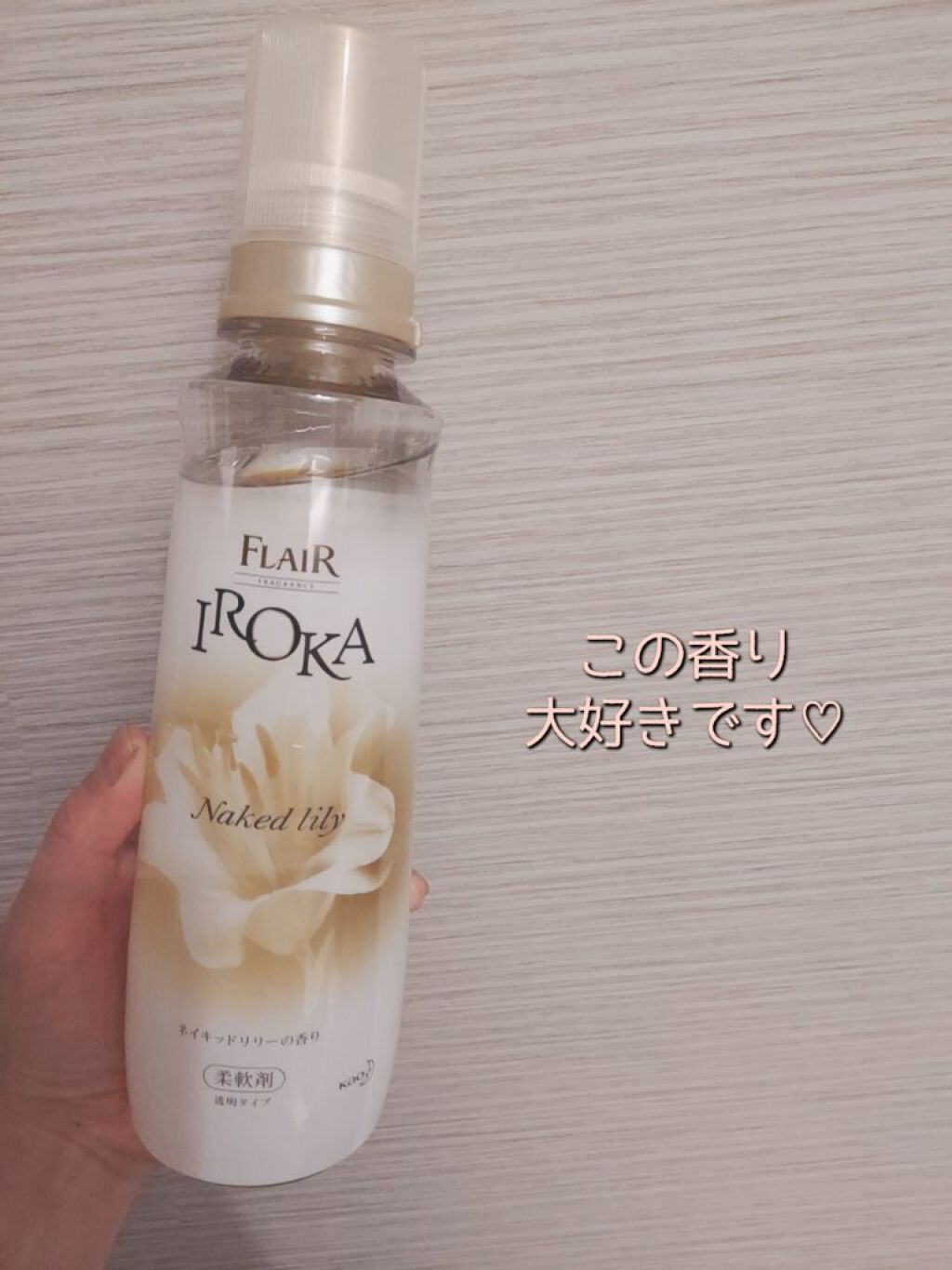 - 香水のように香り高い プレミアム柔軟剤IROKA。 素肌のあたたかさを想わせる「ピュアムスク*1」と、香水には欠かせない「高級アンバー」を贅沢*2に使用。 香水のように上質、なのに透明感あふれるその香りは、あなたらしい美しさを、上品にさりげなく引き立てる。 透明感あふれる上品な「ネイキッドリリー」の香り。 *1天然ムスク香気の主成分と同構造のl-Muscone *2当社柔軟剤比