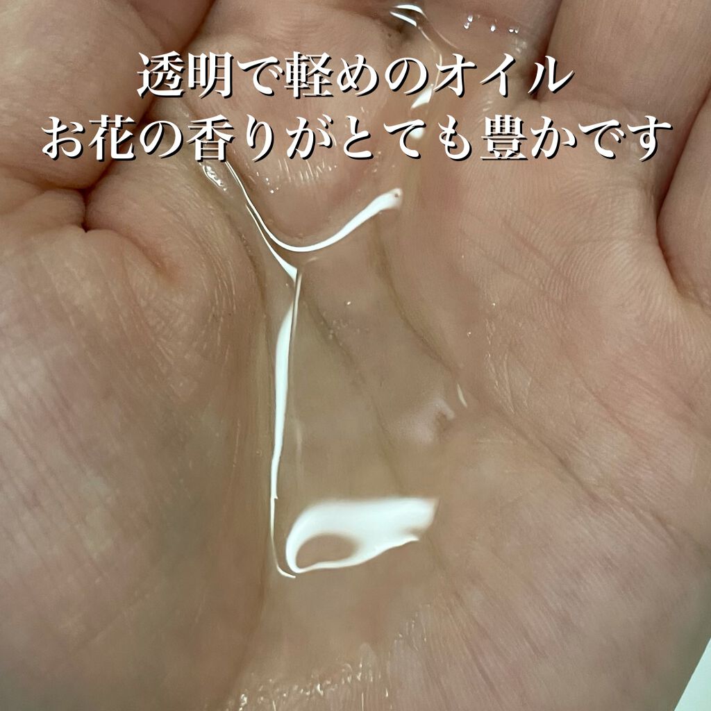 ベタつきにくくさらりとした軽いつけ心地 指通りさらさらで湿度80%でもまとまる髪へ 無香料なので、他の香りの邪魔をしないので香りが混ざることなく使いやすいと思いました! 100mlとオイルにしては量が多いのでコスパはとてもいいと思います!