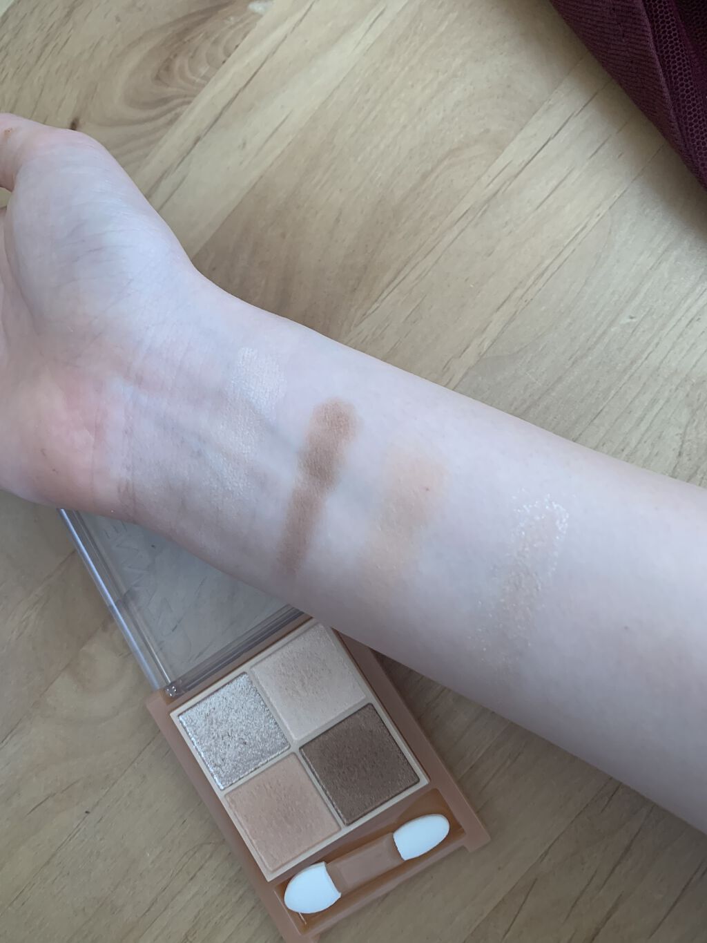 - ラメ・パール・マット3質感の4色アイシャドウ。 肌馴染みの良いベージュを基調としたカラー。ラメ・パール・マットの3質感を重ねて、自然にまぶたを強調し奥行のある大きな目元へ。 しっとり溶け込むような柔らかなパウダーなので、スルスル伸びてまぶたにピタッと密着。保湿成分(スクワラン・ホホバ種子油)配合。