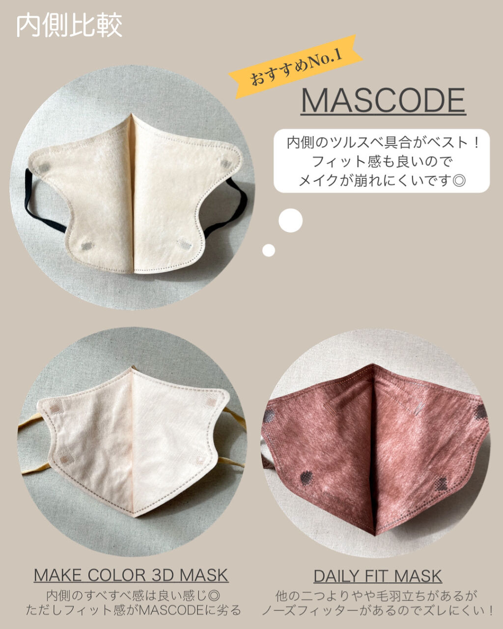 マスク選びの参考になれば嬉しいです😭💕 サイズ展開のあるものは全て一番小さいサイズを着用しています。 またLIGHTYはあまりに大きかったのでゴムを結んで着用しています。 それぞれのマスクの詳しいレビューは別途投稿してますので、気になった方は見てもらえたら嬉しいです🙆♀️💕