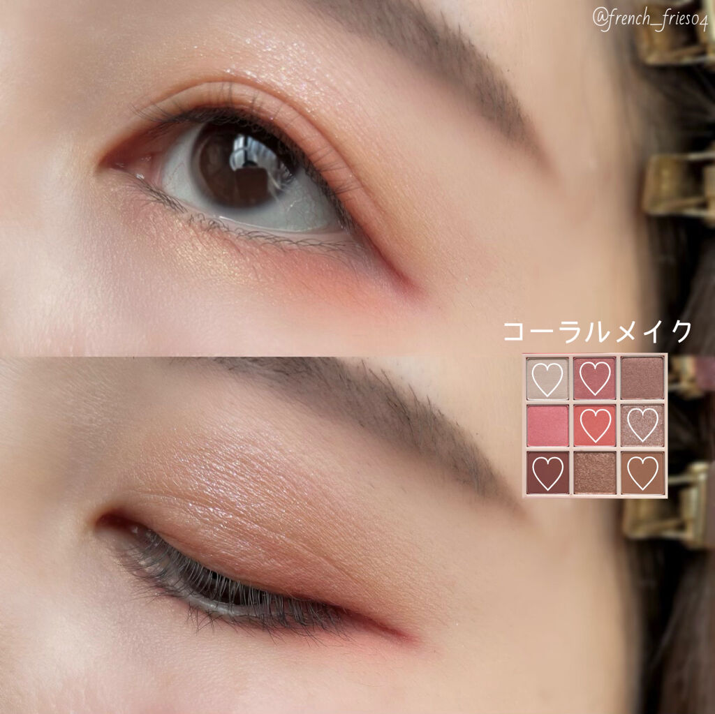 肌馴染みの良いコーラルカラー、締め色が赤みのあるブラウンなので可愛くなり過ぎず、しっかり目元をまとめてくれます◎ ヌーディーなカラーと締め色カラーはマット、メインカラーはほんのりラメ、プラスで楽しめるラメと捨て色なしの4色パレット🎨 爽やかさあふれる肌なじみのよいコーラルで可憐な印象に。