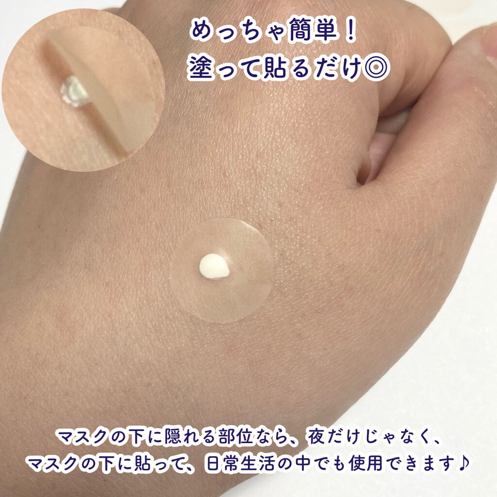 - あらゆるニキビを根本からケアする部分用クリーム。気になる部分に塗布し、付属の集中ケア*シートをクリームの上から貼ることで、寝ている間に効果的にアプローチします。 ●医薬部外品 ●効能・効果:ニキビ予防、肌荒れ予防、肌の清浄 ●お肌に優しい植物由来成分(天然ビタミンE、ヨクイニンエキス、ユキノシタエキス)配合 ●合成香料・着色料・シリコーン・パラベン不使用 *ニキビを予防すること ※「ニキビケア」とはニキビを予防することです