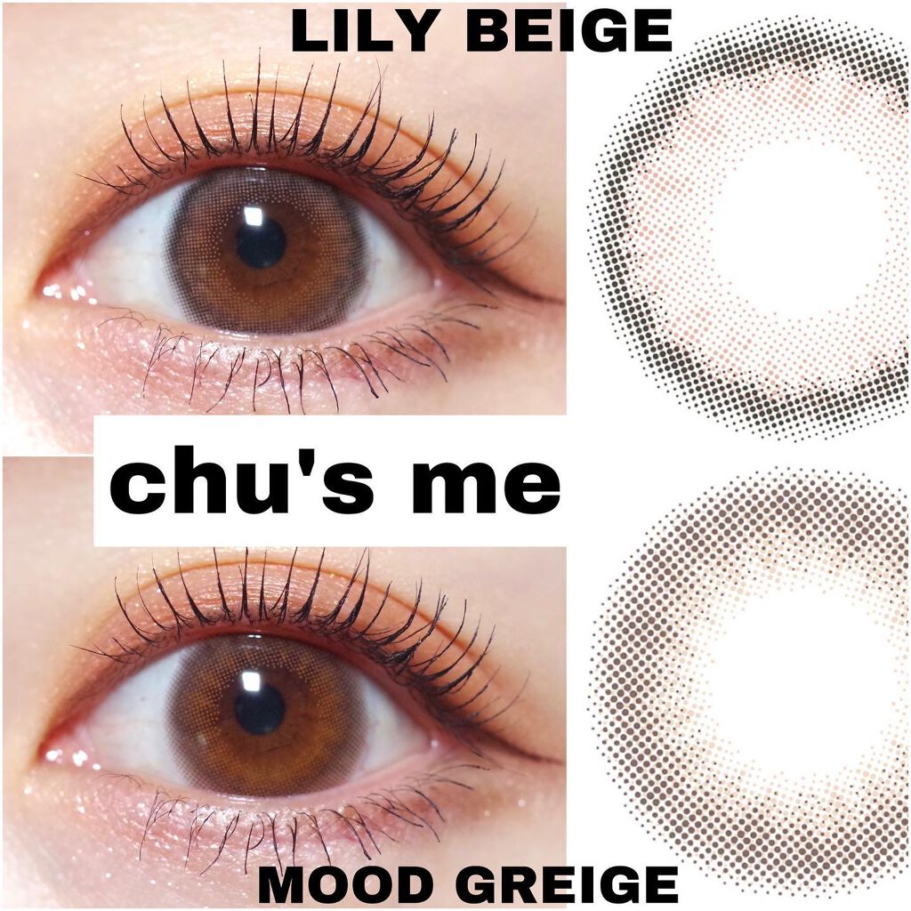 生まれつきの茶目になれるような透明感のあるナチュラルブラウンレンズ。 細フチできゅるんと見える韓国っぽデザイン!うるおいで満ちたうるめきベージュ。 じゅわっと瞳にツヤをしのばせる、うるめきグレー。