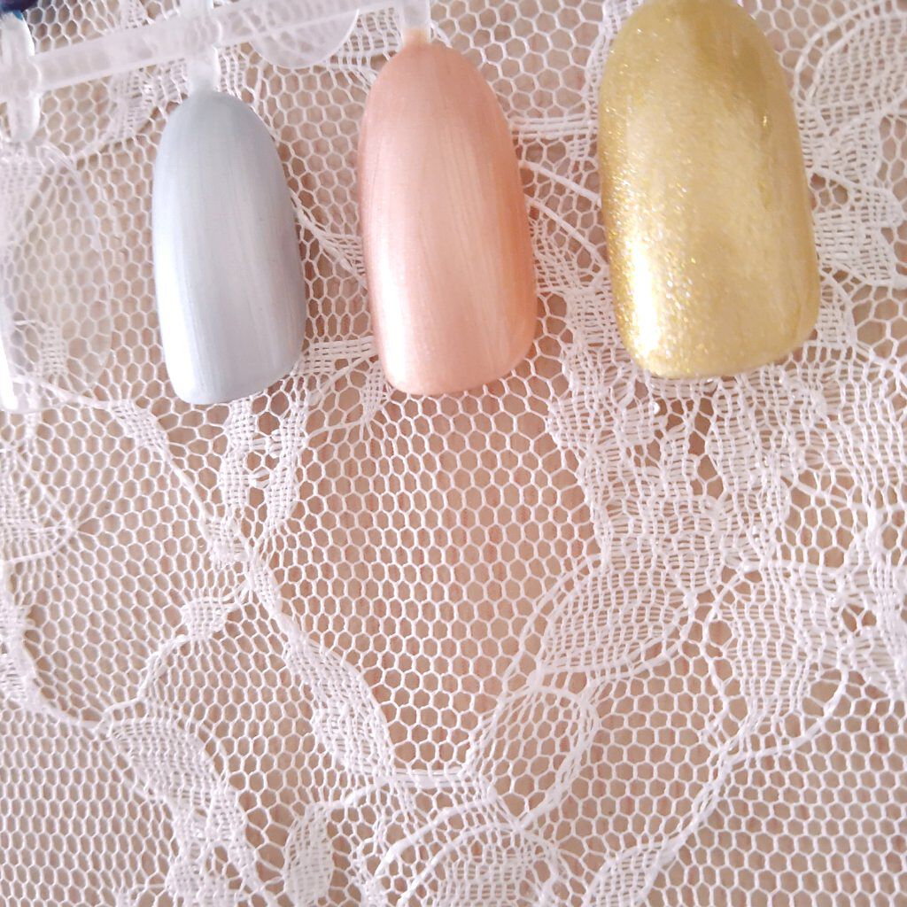 通常タイプは、しっとりした感じでつきます。 パールタイプはパールがキラキラ反射し、肌にツヤ感がでます。 今回追加されたアプリコットシェルですが、新色はほわっと発色の優しい色味で、とっても使いやすいカラーだと思います!