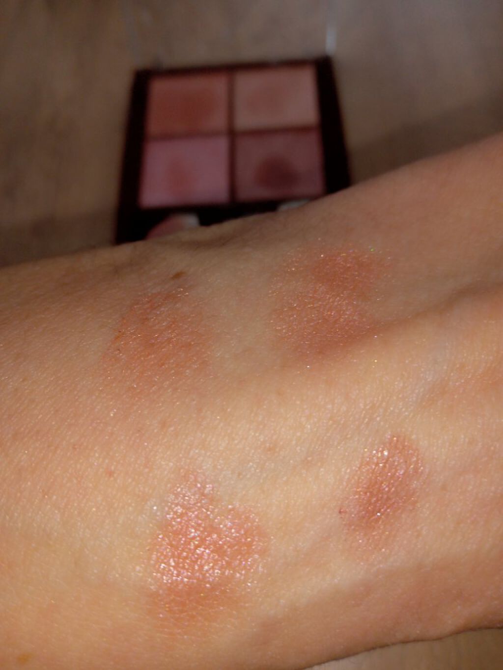 ブルベさん向けかなと思いましたがイエベも使える キャンメイクのアイメイクプライマーを使って発色良くなる 粉飛び防止ラメ落ちなしに 秋らしいテラコッタとラズベリー色のメイクが楽しめる 右周り左周りで違ったメイクができる 捨て色なし 秋の暖色アイメイクをお探しの方 1.左上を下地として瞼のくすみをとばします 2.右上か左下をアイホールに下瞼まで囲んで 3.右下を二重幅にチップで置いて 4.上下の真ん中にラメを乗せるとかわいいと思いました 必ずぼかしてください