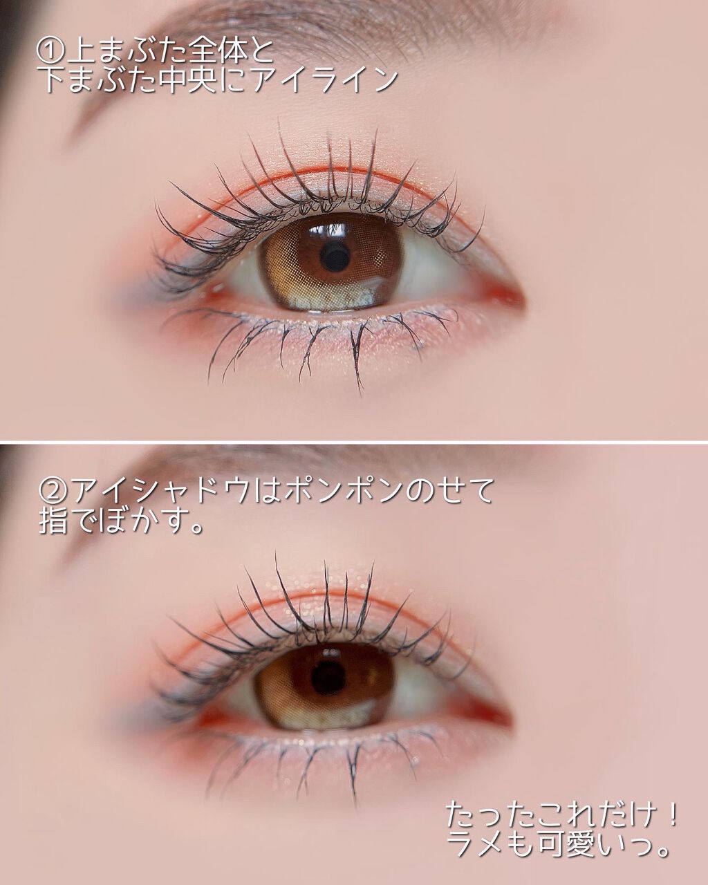 単色アイシャドウで簡単に可愛く! ベースにハイライトにしてその後にアイシャドウを塗ってまた中央のみハイライト塗ってキラキラしてます! カラコンの発色がめっちゃ良いのであえて真逆のメイクにしてみました〜! リップはマットにしてます☺︎