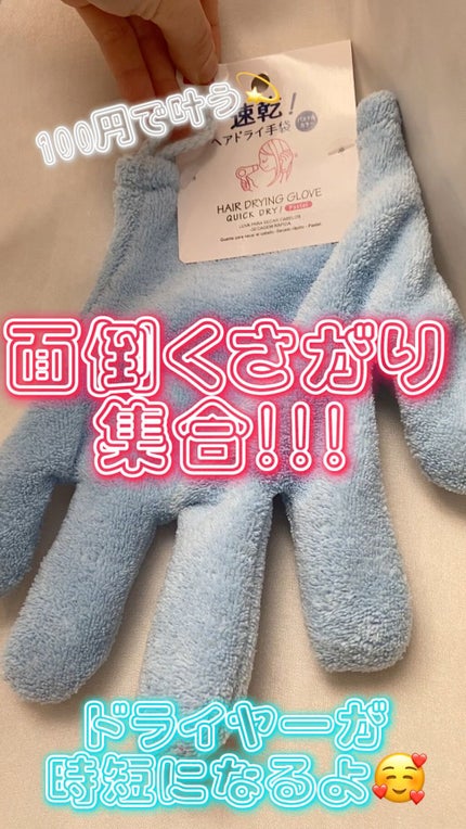 速乾 超吸収!ヘアドライ手袋(¥110)は神商品!! タイル生地で作られた手袋で髪の毛を撫でるだけでしっかり吸水してくれます。 しっかりタオルドライできるし使い方簡単だし¥110だし言う事なしの神商品です!
