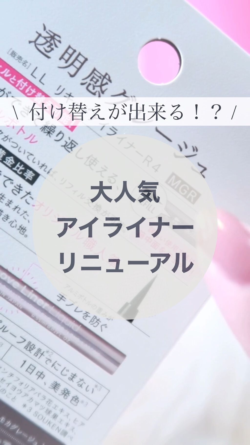 - 「0.1mmの極細毛の筆先」、「手ブレを防ぐ重さのあるアルミボトル」、「ウォータープルーフ&スマッジプルーフ」、「ぬるま湯で簡単オフ」という特長は従来品から引き継ぎ、新たに3つの特長をプラスしました。 1.ラブ・ライナー史上初!つけ替えができて繰り返し使える「リユーザブルボトル」に進化 筆とインクがセットになった専用リフィルをつけ替えることで、お気に入りのボトルを繰り返し使うことができます。 2.ラブ・ライナーだけの黄金比率。職人の手もみブレンドでできたオリジナル職人筆 筆づくり発祥の地、奈良の筆職人の手もみの技によるラブ・ライナーだけのオリジナル職人筆を採用。新素材をラブ・ライナー独自の比率でブレンドし、まぶたに最もふさわしいやわらかさとコシのバランスで、ラブ・ライナー史上最高の描き心地を実現。 3.10種類の美容成分配合※ 従来品に配合していた5種類の美容成分に加え、まつげケアを叶える美容成分を新規配合。合計10種類の美容成分※でメイクするたびに美しい目元へ。 ※保湿成分のこと