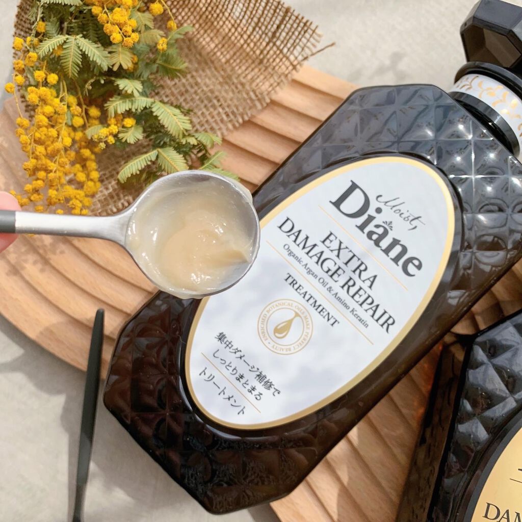 ダイアンエクストラダメージリペアのシャンプー&トリートメントです😌ノンシリコンでサルフェートフリー(ラウレス硫酸Naなど)独自のビューティーケラチン処方。アミノケラチン→集中ダメージ補修でしっとりまとまる。オーガニックアルガンオイル→傷んだ髪...