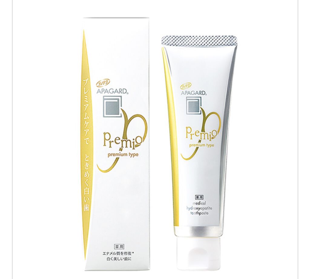- 【医薬部外品】 独自成分「薬用ハイドロキシアパタイト」がエナメル質を整えてむし歯を予防。アパガードはエナメル質の健康を保つことで自然な白い歯に導く美白歯みがきブランド。アパガードプレミオは「薬用ハイドロキシアパタイト」を高配合(スタンダードタイプ比)。プレミアムケアでときめく白い歯に。 <ライトミント> ●サンギ独自の薬用成分ナノ粒子「薬用ハイドロキシアパタイト」を高配合したプレミアムタイプ。※Mプラス、スモーキン比 ●歯の再石灰化率、白色度もアップ。 ●歯垢を吸着除去し、歯のエナメル質の目に見えない傷を埋め、ミネラル欠損部(初期むし歯)を再石灰化するナノ<mHAP>の3つの働きで、むし歯を予防。 ●パール成分(加水分解コンキオリン液)配合。 <エクストラミント> ●強めのミントがお好みの方におススメ!ミント強めの「エクストラミント」フレーバー。 ●サンギ独自の薬用成分ナノ粒子「薬用ハイドロキシアパタイト」を高配合したプレミアムタイプ。※Mプラス、スモーキン比 ●歯垢を吸着除去、エナメル質表面の目に見えない傷を埋めてなめらかに、エナメル質から溶け出したミネラルを補給(再石灰化)する、という薬用ハイドロキシアパタイトの3つの作用でむし歯を予防。 ●パール成分(加水分解コンキオリン液)を追加したブライトニング処方
