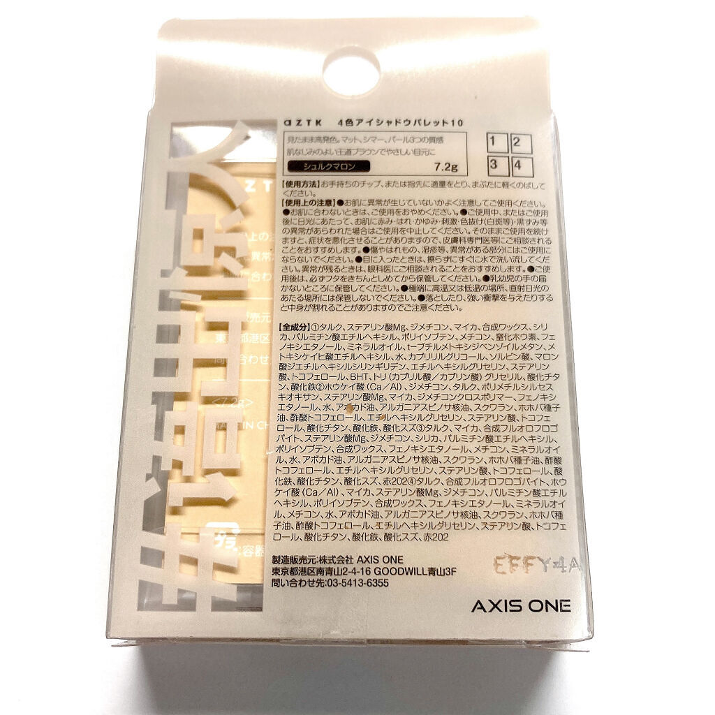 - ★オンオフ問わずマルチに活躍「4色アイシャドウ」 これ一つあれば誰でも簡単に旬の目元になれる、トレンド感のあるニュアンスカラーが4色入ったアイシャドウパレット。4色のつけ方を変えるだけで、何通りもの印象の異なるメイクを楽しむことができます。