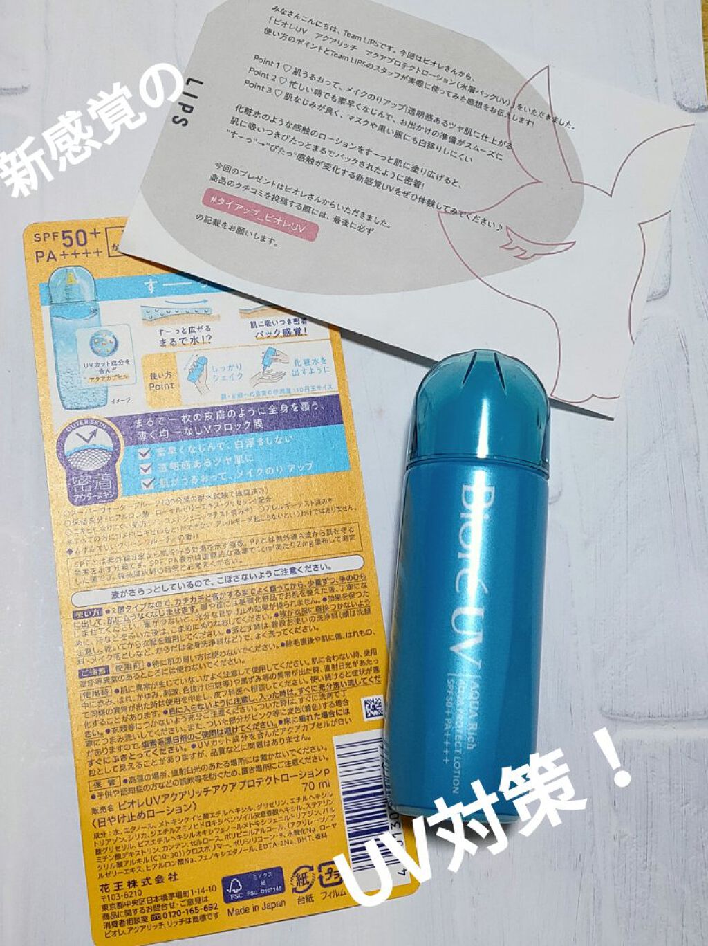 ビオレUVアクアリッチアクアプロテクトローションを使ってみたよ🩵SPF50+PA++++顔とからだ両方使用可!メイクのりをUPさせてくれて、水光肌みたいなツヤ感も出るから気に入ってる🩵UVカット成分が含まれたアクアカプセルが入ってるよ✨想像よ...