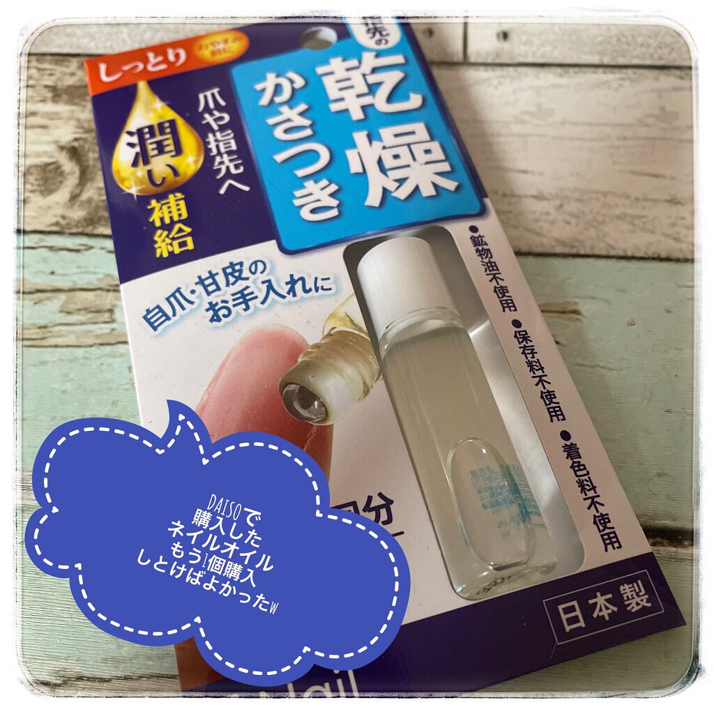 ダイソーで購入しました。爪が乾燥して、潤いが足りなくて悲惨だったけど、これで潤うー♪✼••┈┈••✼••┈┈••✼••┈┈••✼••┈┈••✼【使った商品】爪美活ネイルオイルさっぱり【商品の特徴】爪や指先へ潤い補給【使用感】ベタつかず、塗りや...