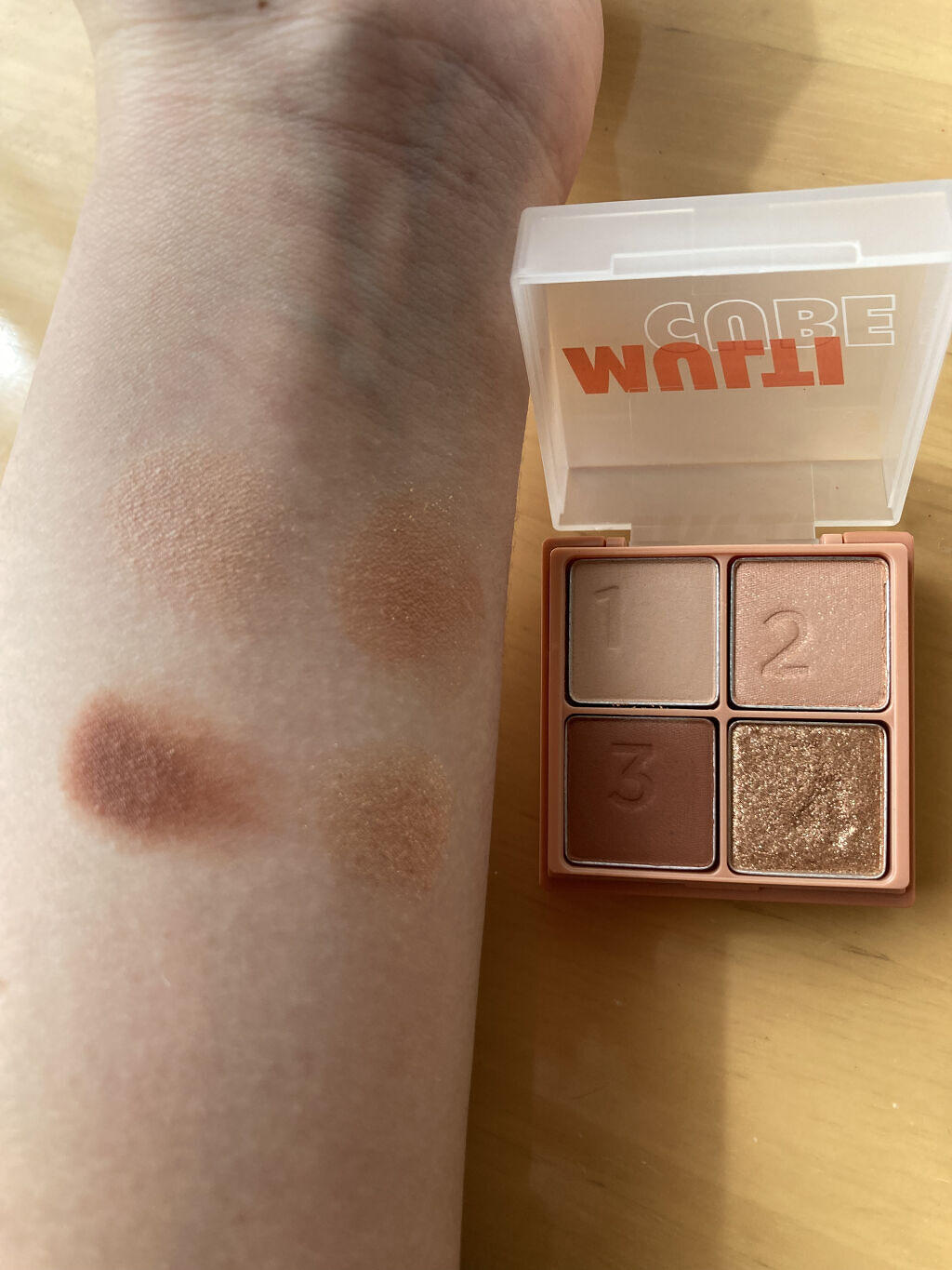 【#アイムミミ#i’mmeme】#マルチキューブ#03#ベイクドジンジャー番号通りにメイクするだけ!とっても簡単にメイクが仕上がるアイシャドウ&チークです!1-4がアイシャドウ、5がチークになっています。粉質はサラッとした粉質で、テクニックレ...