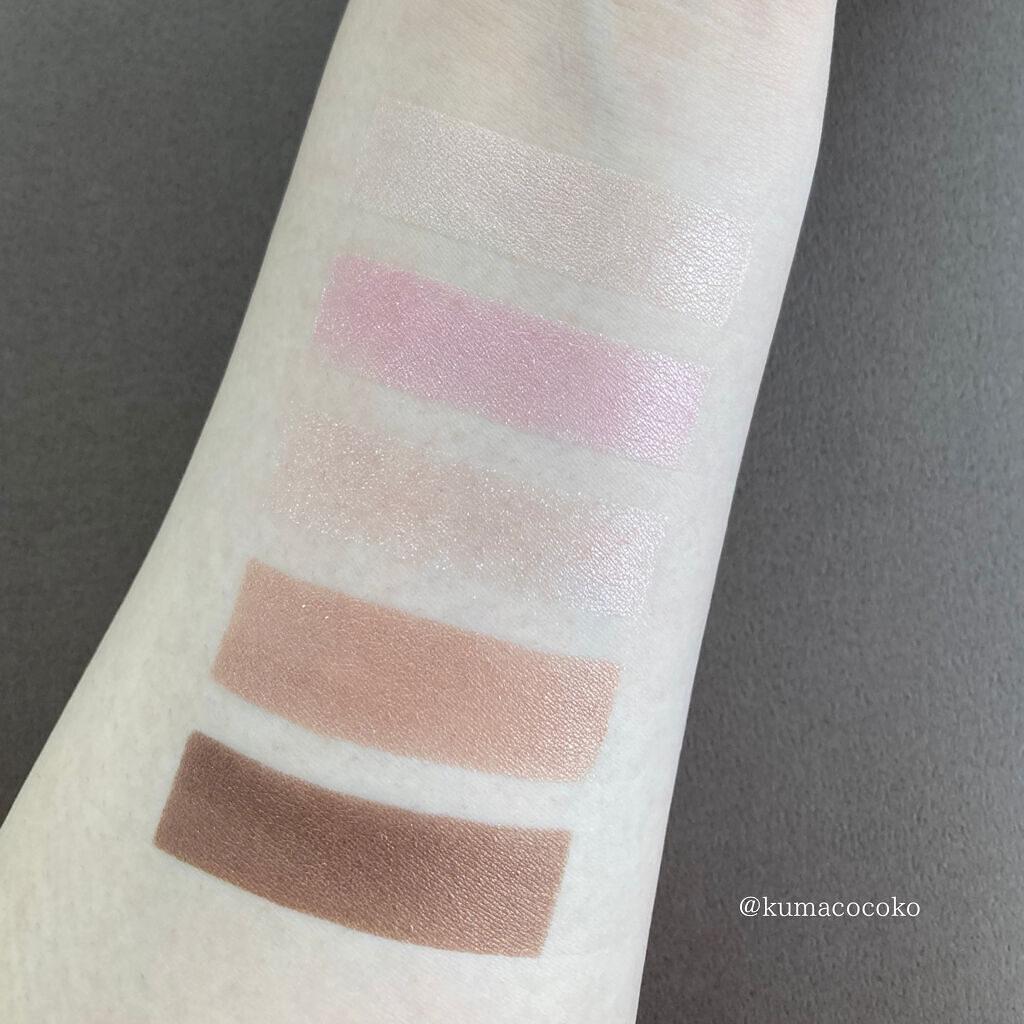 【13 クール ブレンディング】13は想像していたより「くすみ強め・暗め」と感じました。公式画像の淡さはそこまでなかかったから、買うときは「公式画像と実物は印象違うかも」と思っておくと良いかも…?粉質はALLマット。素人目ですが、くすみが得意な方、使いやすいかな?と思っています💭🤍 【16 バイオレットニット】ピンクベージュ〜ブラウン系のパレットです。製品コンセプトのようにまさに冬に使いやすいほっこりした感じ◎正直今は手が伸びない状況ですが、秋冬になったら使いたいです。粉質はマットやグリッター、ラメありなど様々です。 【18 ベリースムージー】個人的にはこの中で1番使いやすいパレットでした◎くすみがなく、青みが強く、明るめで、白みも感じます。(私の得意要素が揃っていた)写真でもわかるように結構しっかり青みピンク系です。18色も揃っているのでかなり楽しめると思います♡こちらも粉質様々です。グリッターもしっとり。いや、ペタッと?していてかなり飛びにくいテクスチャになっています。
