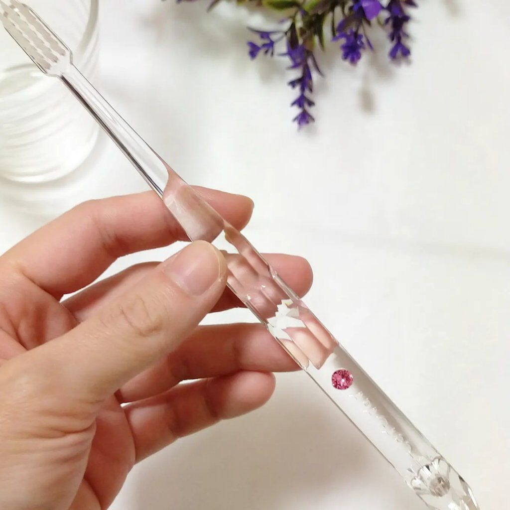 - 美しい透明ハンドルにクリスタルをあしらった歯ブラシ。3列コンパクトヘッド。独自のアパタイト毛*で、ブラッシング時にマイナスイオンを発生。気持ち華やぐクリスタル歯ブラシで着色・歯垢を落として白い歯へ。耐熱温度:60℃ *アパサイダー(抗菌剤)とトルマリンを練りこんだ先細毛 2021年3月12日 パッケージを変更して登場。 みずみずしく凛としたクリスタル、甘さと洗練さを兼ね備えたバイオレット、フェミニンな印象の華やぎローズ、ポジティブなパワー溢れるトパーズ。