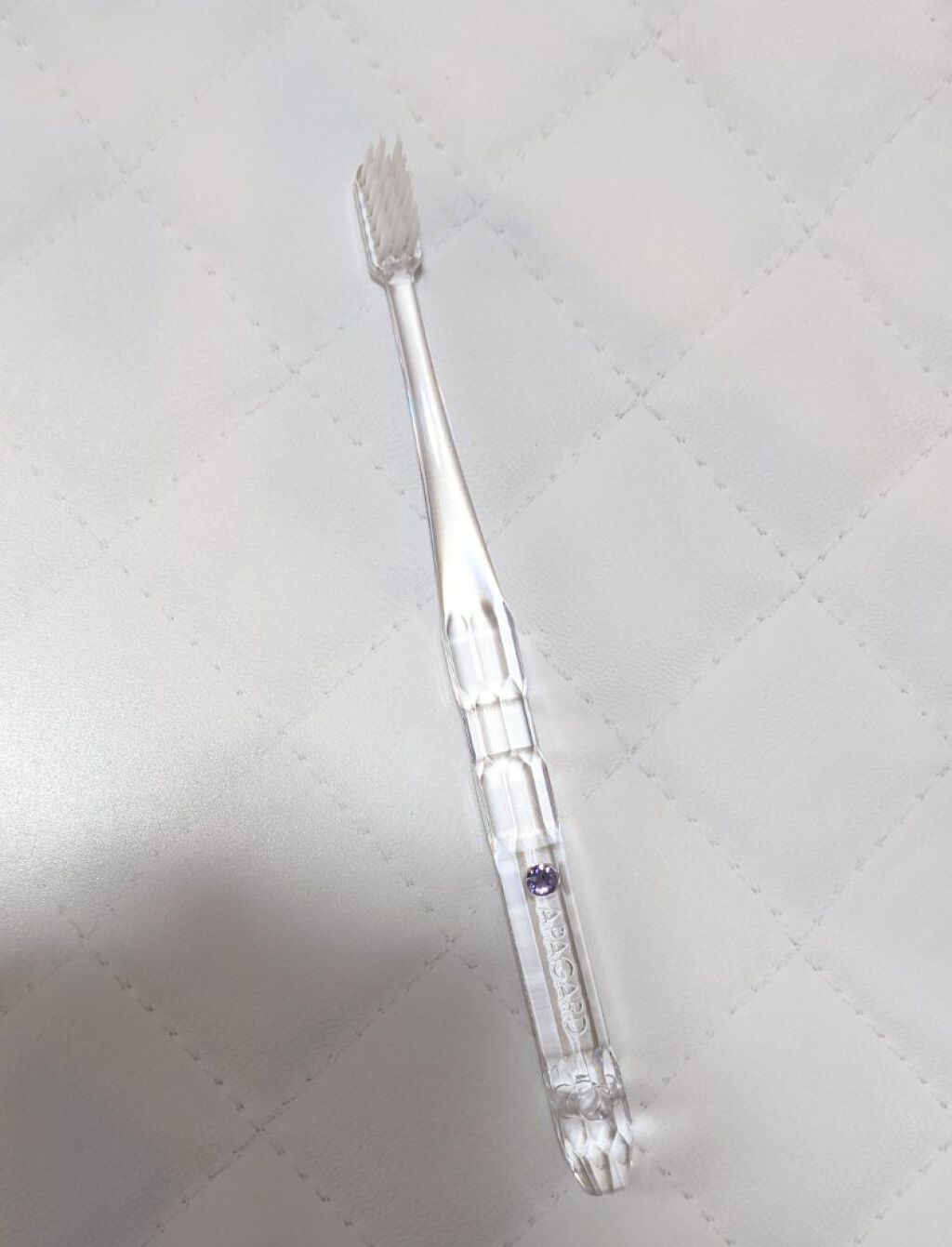 美しい透明ハンドルにキラッと輝くクリスタルをあしらった「アパガードクリスタル歯ブラシ」といっしょに使っています。このハブラシ、透明ハンドルが美しく、一粒のクリスタルが輝いていて、綺麗なんです!見た目が美しいだけじゃなくて、持ちやすい形状で磨き...