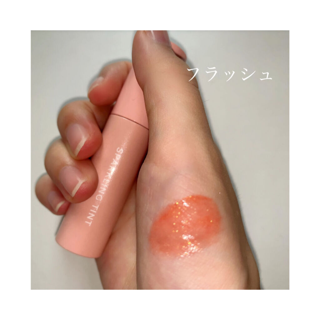 ラメがめちゃくちゃ可愛いA’pieuのジューシーパン スパークリングティント。BE01のときめくイチジクはベースがベージュ系のナチュラルカラーでゴールドやホワイト系のラメが入っています! 普段から濃いめのリップが好きな方は物足りないと感じると思うので、こちらを全体的に塗った上に内側に濃いめのリップ塗ってもとても可愛く仕上がります🫶🏻 ティント効果もあって、ティッシュオフするとツヤ感は失われるものの色とラメはしっかり残ります!