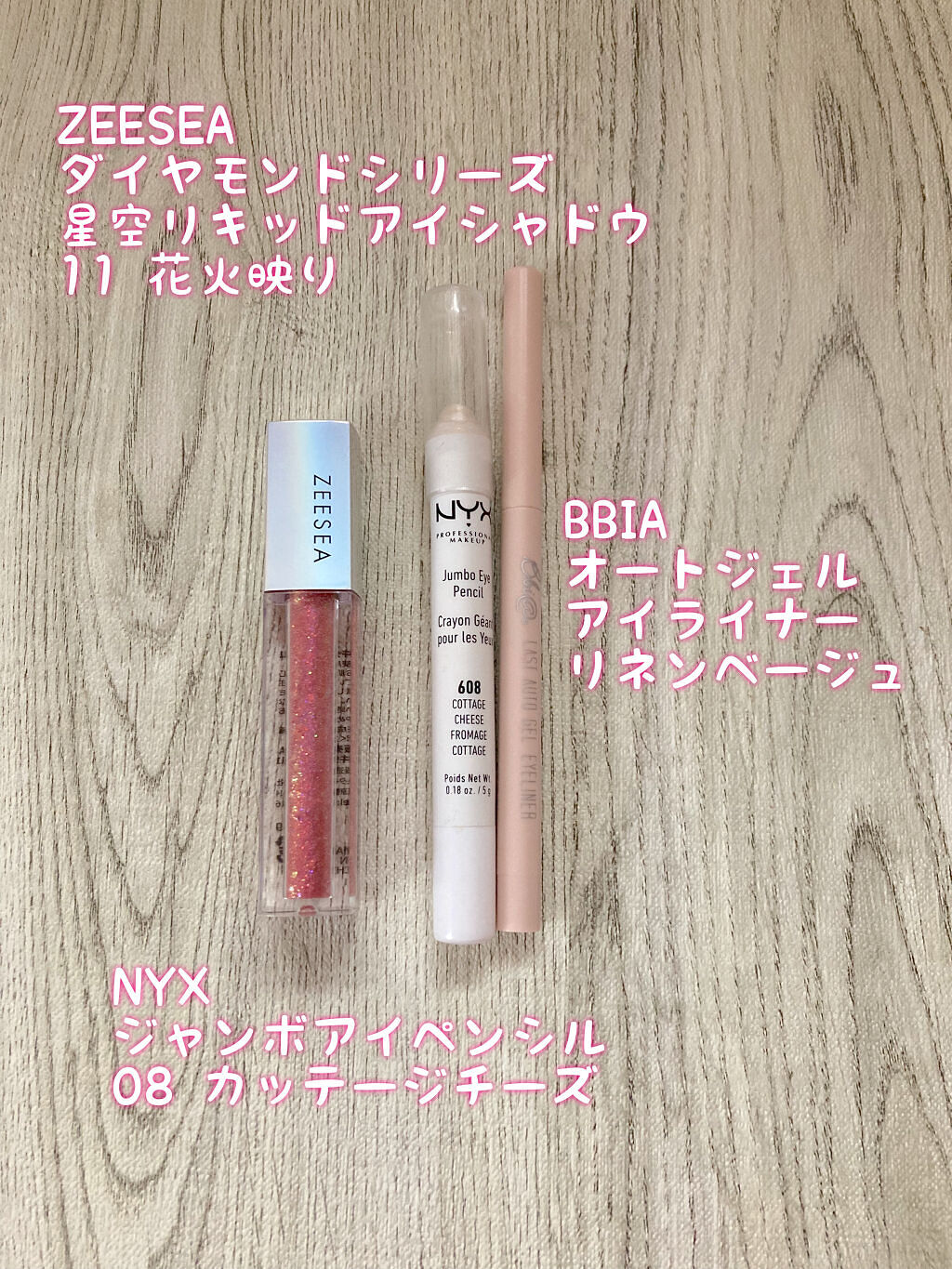 このオレンジブラウンとピンクベージュは本当大好きです。 セザンヌの方がオレンジ感が強く、薄いカラーが明るいです。 まぶたの中央や下まぶたに銀の繭をのせるとパッと華やいで綺麗です。