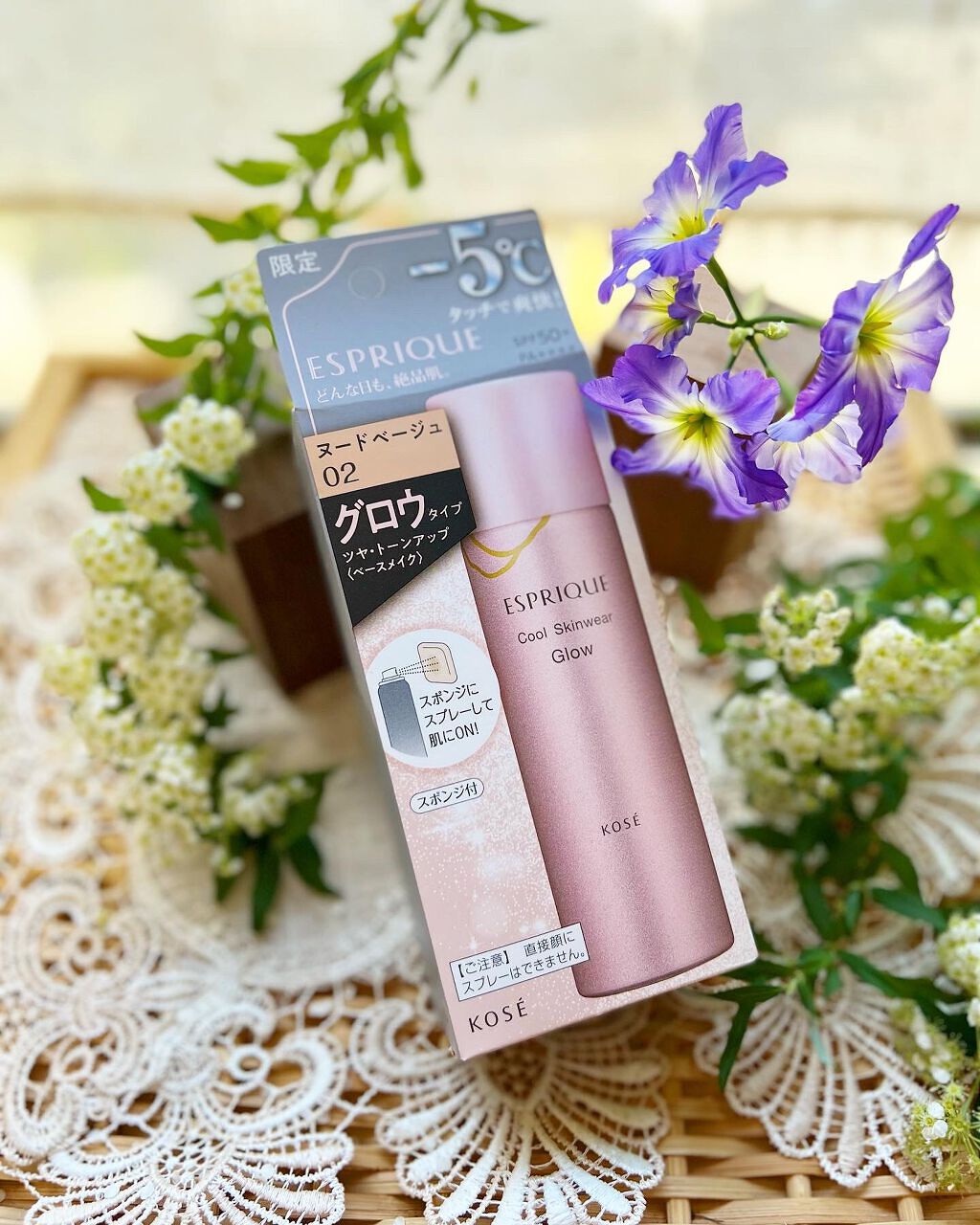 - 限定発売 クールな使い心地で、サラッとトーンアップ。 これ1本でも、下地としても使える、ツヤ肌仕上げのグロウスプレー。 SPF50+ / PA++++ ■ -5℃タッチで毛穴の気になる肌もキュッとひきしめ。 素肌そのものがうるツヤ肌になったかのような美肌を、一日中キープするトーンアップスプレー。 ■ 光の色でワントーンアップしたツヤ美肌へ。 ポアコンシールゲル&ツヤオイルを配合。ツヤ肌をさまたげる毛穴や肌の凹凸をポアコンシールゲルがなめらかにし、心地よくなじむツヤオイルが肌に溶け込むように自然なツヤを与えます。 ■ 高い保湿感でうる肌が持続。 厳選した美容液成分と保湿効果の高いワセリンを配合。 乾燥から肌をしっかりと守り、うるおいに満ちたツヤ肌を叶えます。 ■ マスクにつきにくく、美しい仕上がりを長時間キープ。 顔料に疎水処理を施した、マスクにつきにくい成分を配合することで、マスクへの色移りを低減。 皮脂・汗・水にも強い処方のため、蒸れやすいマスク内でも二次付着しにくい処方です。 ■ 紫外線だけでなく、肌あれや乾燥、大気中の微粒子(ちり・ほこり・花粉など)からも肌を守ります。 ■ 1品5役(美容液・日やけ止め・化粧下地・ファンデーション・フェイスパウダー) ■ スジやムラができにくく、肌に均一にしっかりと塗布できる専用スポンジ付き。 ■ パッチテスト済み ※すべてのかたに皮膚刺激が起きないというわけではありません。 ■ 無香料。植物成分の自然な香り。