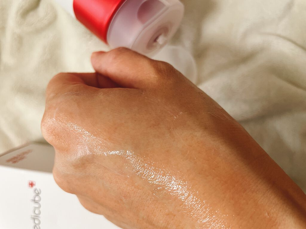 植物由来の保湿成分及びオーガニックエキスを配合した製品で 美容液なのにべとつかなく毎日使うことでハリとツヤのある肌に導いてくれます。 水のようにサラサラとしていて顔に伸ばすとサラッとベタつかずにスッと浸透してくれました。香りは無臭なので他のスキンケアとも合わせて使いやすいです。 ポンプタイプで出しやすく最後まで清潔に使えるのもいいPOINTでした!!