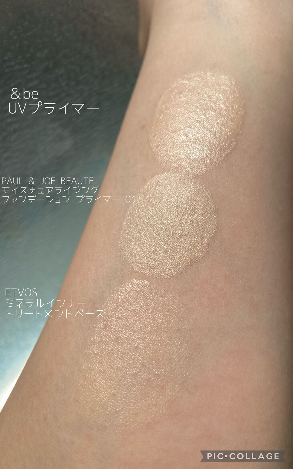 最近ノーファンデをはじめたお友達の肌がすごくキレイで。日焼け止めとか何使ってるのか聞いたらこれだよって教えてくれたので、さっそく私も使い始めました♡ &be(アンドビー)「UVプライマー」下地なんだけど、カバー力が高めでとにかくツヤがキレイ。肌にみずみずしい透明感を与える微細パールが高配合されてるんだそう。 SPF50+・PA++++と高い紫外線カット効果をノンケミカル処方で実現。鉱物油、紫外線吸収剤、石油系界面活性剤、タール系色素、合成香料不使用のフリー処方で、石鹸オフできるのも嬉しいポイント。