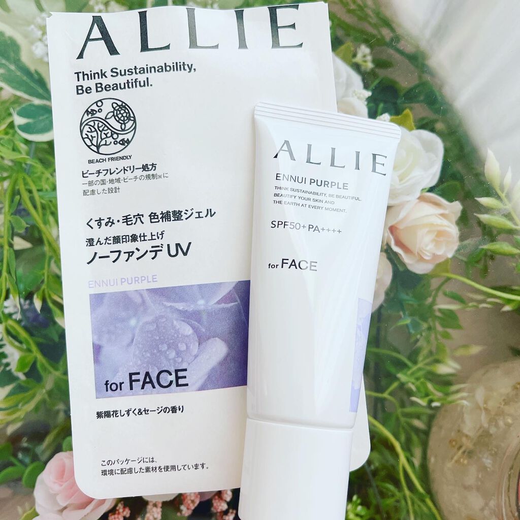 - 世界を想う 美しさつづく*1 日やけ止め おでかけも、マスクを外す機会も増える毎日に。 一部の国・地域・ビーチの規制に配慮した設計のビーチフレンドリー処方。 これ 1 本で、UV カット&顔色補整効果でクマ・くすみ・色ムラまでカバー! テカりにくく、くずれにくいノーファンデ UV*2 【ENNUI PURPLE】 くすみや毛穴をカバー 儚げな透明感のある顔印象続く 澄んだ気分を誘う 紫陽花しずく&セージの香り 【SUNNY APRICOT】 クマや毛穴をカバー いきいきとした血色感のある顔印象つづく 思わず出かけたくなる アプリコット&金木犀の香り 【SHERR BEIGE】 色ムラや毛穴をカバー 均一で抜け感のある顔印象つづく 自然で飾らない シトラスウッディ&パチュリの香り ●一部の国・地域・ビーチの規制に配慮した設計の「ビーチフレンドリー処方」 ●SPF50+・PA++++ ●汗・水 こすれに強く落ちにくい フリクションプルーフ・スーパーウォータープルーフ ●ベタつきにくい感触がつづく ●テカりにくくキレイな肌仕上がりがつづく ●環境に配慮した素材を使用したパッケージ採用 ●美容液成分(保湿)ヒアルロン酸Na配合 ●顔用 ●普段のメイククレンジングで落とせる ●マスク・タオル等につきにくい ●化粧下地効果 *1 スキンケア効果またはメイクアップ効果による肌仕上がりのこと *2 ファンデーション未使用時でも、自然なベースメイクが仕上がる日やけ止めのこと *3 チリ・ほこり・PM2.5・花粉等すべての微粒子汚れの付着を防ぐわけではありません 01:ENNUI PURPLE パープル 02:SUNNY APRICOT アプリコットピンク 03:SHEER BEIGE ミルキーベージュ