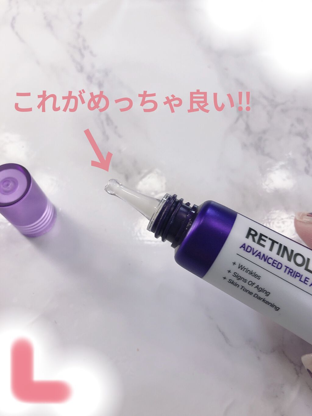 - 目元集中エイジングケア*! おでこ、口元などにもオススメ レチノール*1&レチナール*2配合 大注目成分レチノール*1&レチナール*2を配合、目元、おでこ、口元ケアに特化 レチノール*1&レチナール*2のほかにナイアシンアミド*3を配合し、目元、眉間、おでこ、口元、首など、肌に刻まれた歳月を集中エイジングケア*します。 さらに、ツボクサ、ティーツリー、ヨモギなどの成分も配合され、肌荒れを予防します。 *年齢に応じたケア *1整肌成分 *2整肌成分 *3整肌成分 [使用方法] 洗顔後に化粧水やトナーなどで肌を整えた後、適量を手にとり顔全体に塗り伸ばしてください。