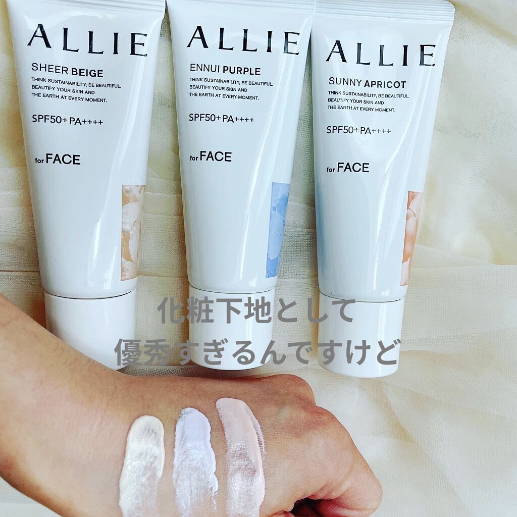 パープルの色補整効果で、くすみ・毛穴をカバー。 【SUNNY APRICOT】アプリコットピンクの色補整効果で、クマ・毛穴をカバー。 ファンデーションを使わない時にも、これ1本で儚げな透明感のある顔印象つづく、ノーファンデUV*。 日焼け止めはマストなのでこのアイテムは使い勝手が良くて気に入っています!