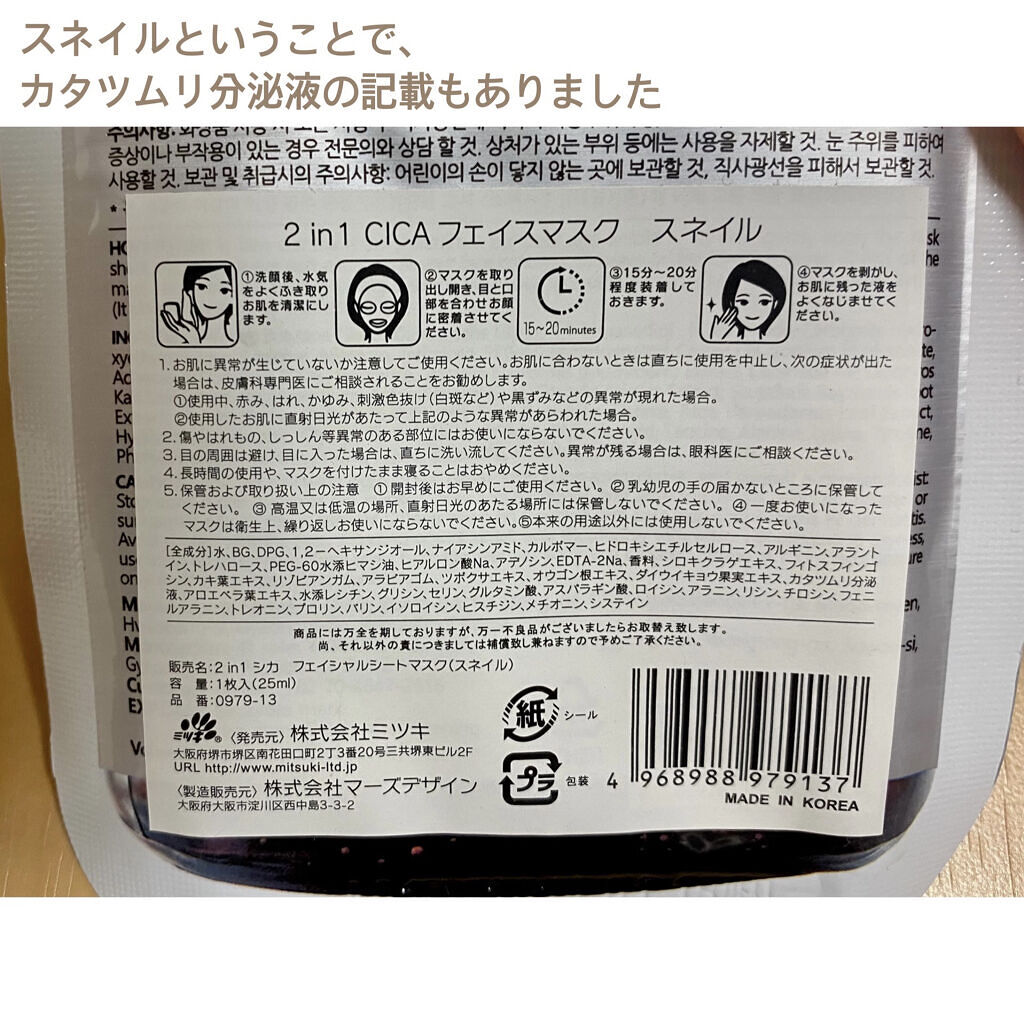 *パックが薄すぎたり、ケバケバしたりは無かった *液はとろみがあり、パックがひたひたになるぐらいあり刺激は無かった *香りは強すぎることは無く、甘めの香り *さっぱりより、しっとりした肌になれる *しっとりもちもち肌になれる *とろみがある液のため、敏感肌の方でも使えそう *肌トラブルが気になる方 *肌の乾燥が気になる方