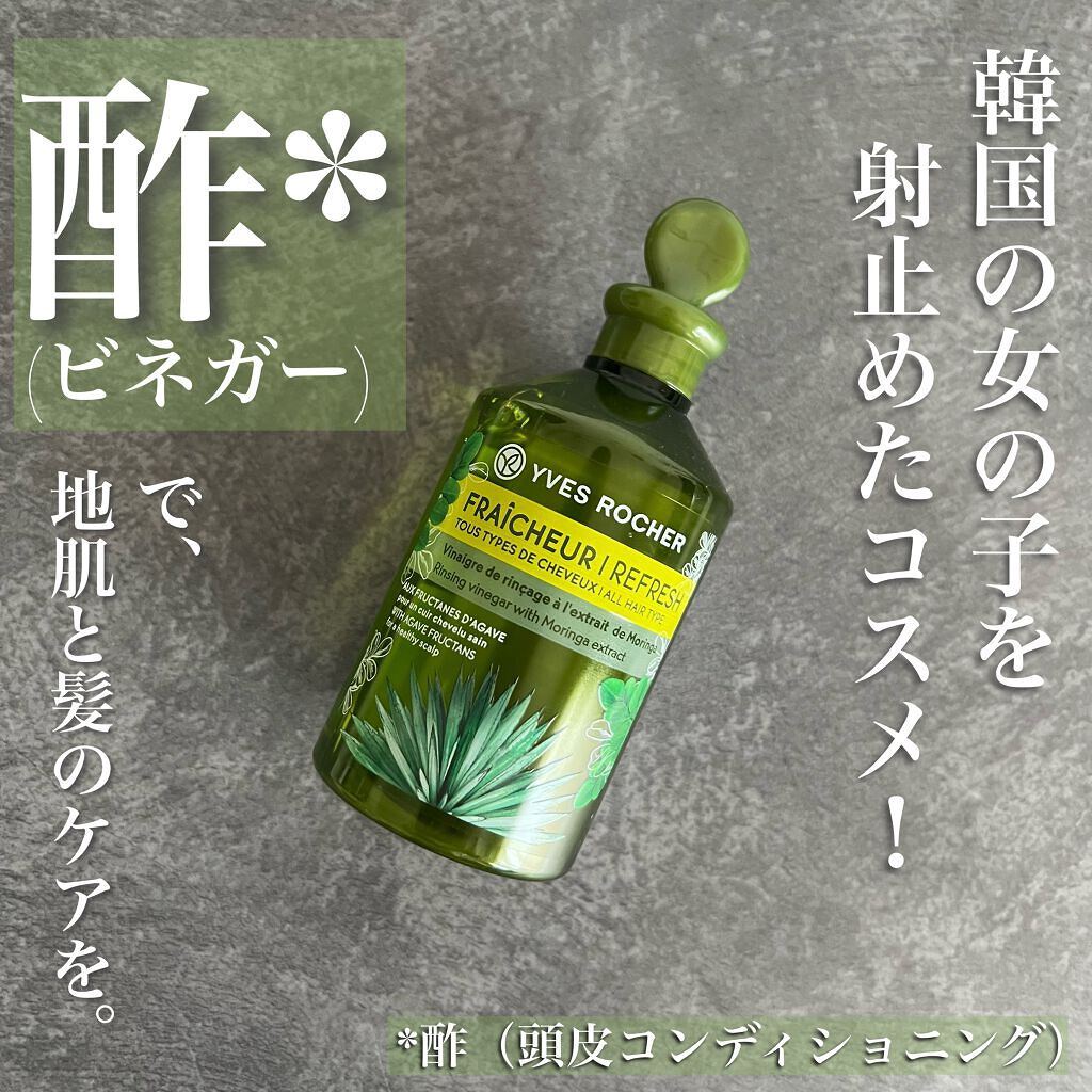イヴ・ロシェリンシングビネガー・ピュアリフレッシュ うるつやモリンガ・シルキーシャイン さらキララズベリーこちらウエルシアでたまたま見つけて購入しました。コンディショナーやヘアマスクなどの後に頭皮や毛先に馴染ませて流すだけ!ビネガーのヘアトリ...