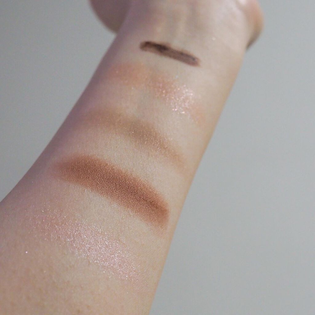 私は欲しすぎて、実はQoo10メガ割で日本上陸前に購入していました😂 特に最近はマットなアイシャドウの気分なので、買ってからほぼ毎日使うくらいヘビロテしてます🙌🏻 ブルベさんはデイリー使い出来るブラウンのアイシャドウ、なかなか見つからないんじゃないでしょうか? 私もその1人で、普段はピンク、モーヴ、グレーなどのお色をよく使っていました。 だけど、これはブラウンも含め、デイリー使いしやすく、他であまり見ない絶妙なお色がたくさん入ってます。 正直Hのお色だけはコッパーぽいのであまり使いませんが、それ以外はほんとに万能です! 汗っかきで一重瞼なので、1日外出しているとアイシャドウが崩れやすいんですが、こちらはふわさらな質感なのでかなり持ちがいいです💫 あとは発色はとてもマイルドなので、失敗しづらいです。メイク初心者さんにもおすすめ!