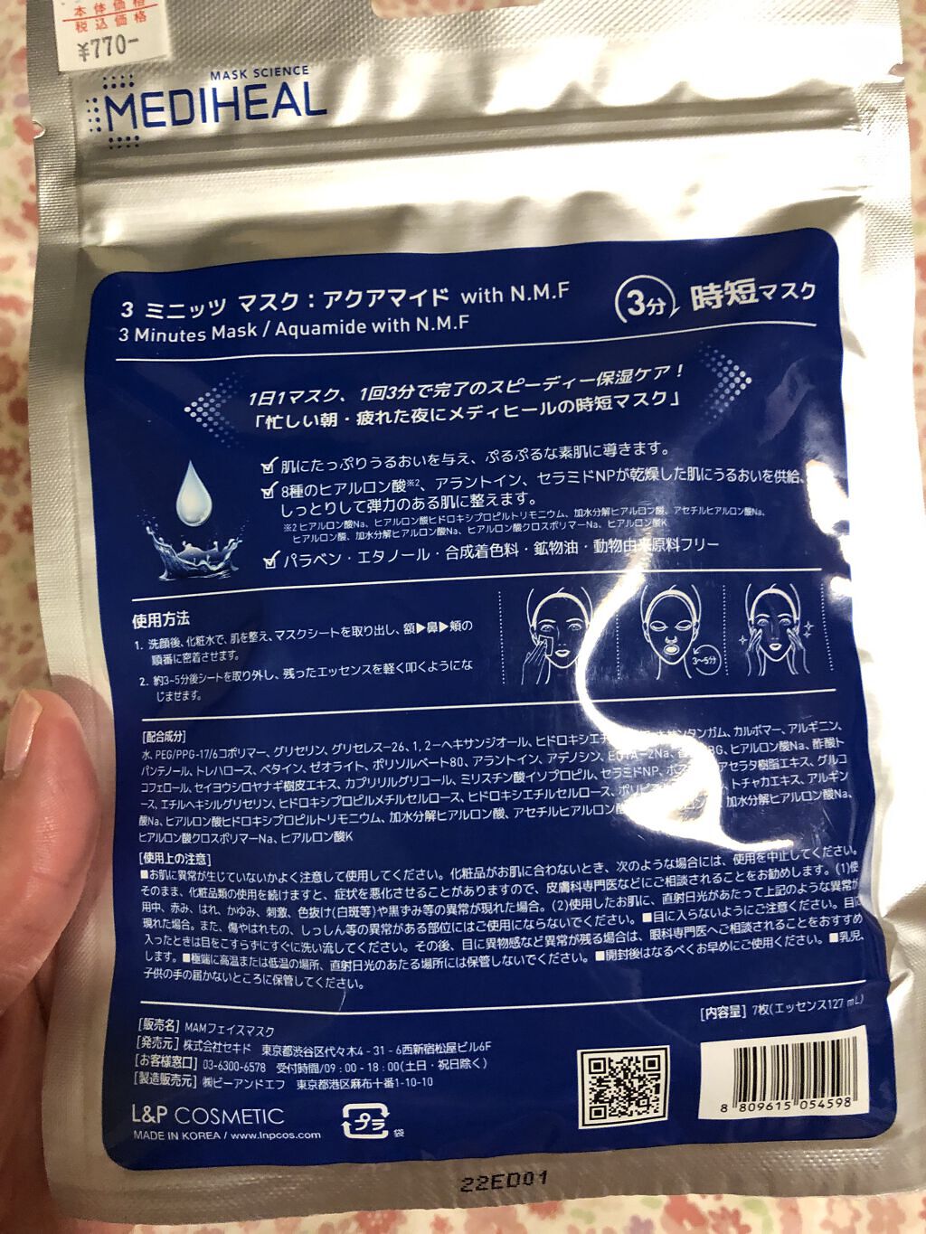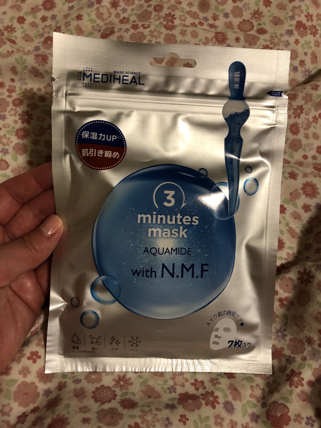 MEDIHEAL3ミニッツマスク:アクアマイドwithN.M.F1日1マスク😊1回3分で完了のスピーディー保湿ケア!忙しい朝、疲れた夜にメディヒールの時短マスク✨時短マスクは本当に1つ持っておくと使えるので好きです🙆♀️朝のスキンケアでゆっ...