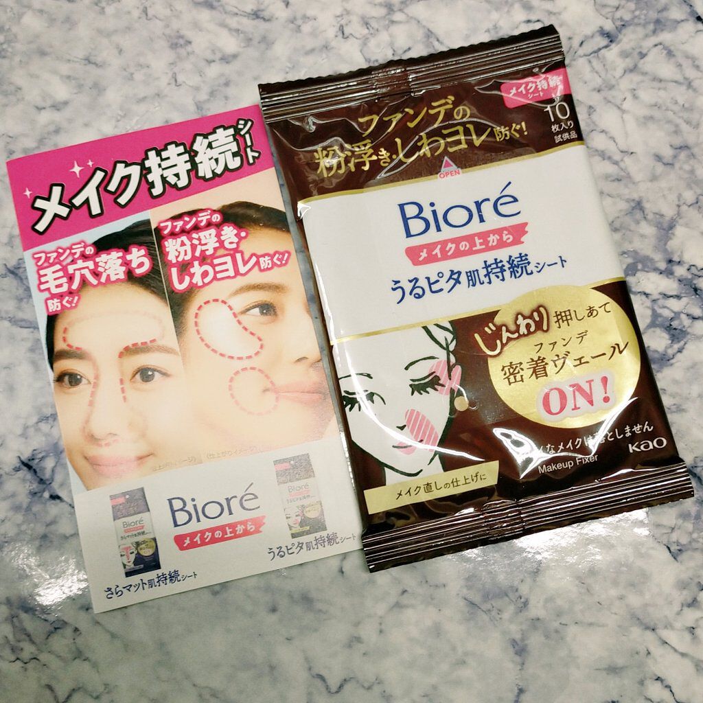 ビオレ様より商品提供していだたきました。Bioreメイクの上からうるピタ肌持続シート10枚入試供品試供品なので10枚入ですがコスパ良さげ◎《特徴》ファンデの粉浮き・しわヨレ防ぐ朝のメイクを密着ロック*¹!*¹うるピタ肌続く:シートによるメイク...