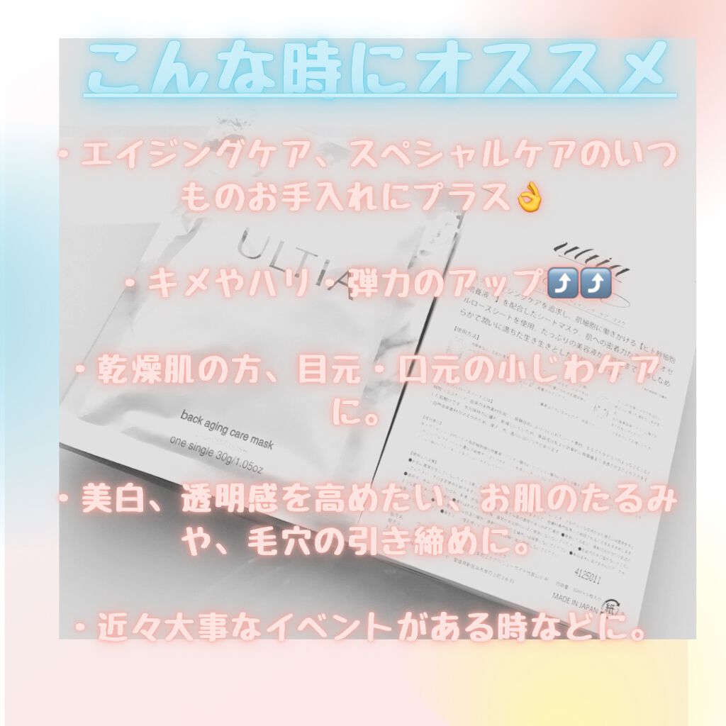 スペシャルケアにおすすめ❣️ULTIA(ウルティア)backagingcaremaskバックエイジングケアマスクフェイスパックシートがすごく変わってて、ココナッツ🥥素材らしい!柔らく、もちもちっとしていて、優しく肌を包み込んでくれます。使い終...