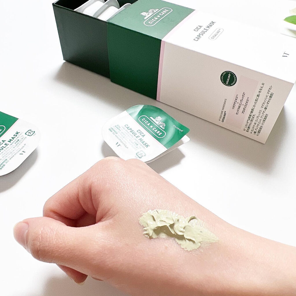 - お肌を柔らげ水分をたっぷりチャージしてくれるシカクリームマスク しっとり密着力の高いクリームクレイが、毛穴に溜まった皮脂や汚れを吸着してすっきり洗い流してくれる! グリーンティー*とVTの独自成分シカリオ™**配合!ピンと弾力のあるしっとりもちもち肌に導きます。敏感肌の方でもお使いいただけます。*チャ葉エキス(整肌成分)**ツボクサエキス、センテラ4Xコンプレックス(アシアチン酸、マデカッソシド、マデカシン酸、アシアチコシド):すべて整肌成分
