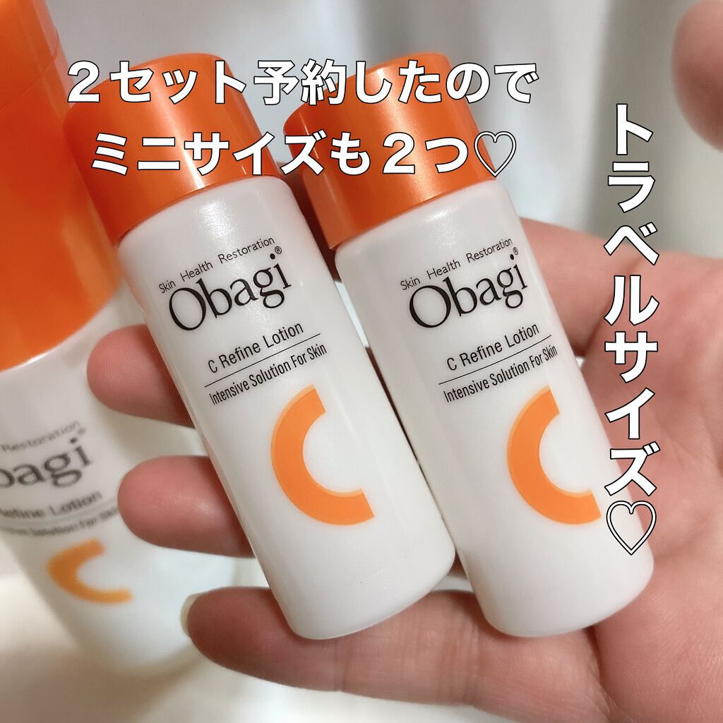 - <オバジC リファインローション> 水、エタノール、BG、グリセリン、DPG、アスコルビン酸、リン酸アスコルビルMg、フラーレン、アスコフィルムノドスムエキス、マクルラコチンチネンシス葉プレニルフラボノイド、ビワ葉エキス、チャ葉エキス、コンフリー葉エキス、プロパンジオール、クエン酸、クエン酸Na、PEG-60水添ヒマシ油、PEG-32、PPG-10メチルグルコース、コハク酸ジエトキシエチル、トレハロース、ポリアクリロイルジメチルタウリンNa、キサンタンガム、ポリソルベート60、ビオサッカリドガム-1、ジラウロイルグルタミン酸リシンNa、ソルビトール、t-ブタノール、PVP、EDTA-2Na、ピロ亜硫酸Na、香料