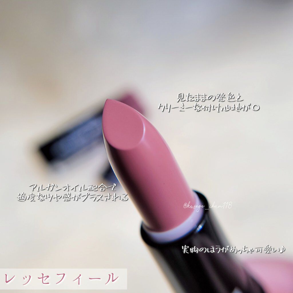 なめらかな塗り心地と、見たままの発色、そして程よいツヤが気に入ってます♪ ティッシュオフしたあとも、マスクに少し付いちゃいますが、結構色は残るので気にしてないです。 私のお気に入りは01インザモーメント04アンビエンス05ミラーライクこの3色!! 01は馴染みが良くてきちんと感がでます。 04は大人の女性って感じだけど、使いやすい♪ 05はラメ感がめちゃくちゃ可愛いベリー系のお色です。 パケもフォルムも可愛くて、メイクに合わせて変えられるので買ってよかったかな^^*