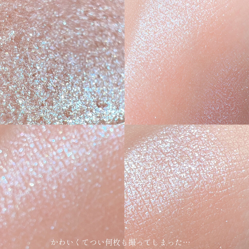 色がしっかり発色するというよりはキラキララメを乗せる感覚で使い勝手が良く新色の発売を心待ちにしていました😊 銀の繭はシャンパンゴールドラメをメインにシルバーのラメもチラチラ。ラメを足したい時に使えそう! 冷凍ベリーはパープルベースの偏光ラメきらんきらんで可愛い
