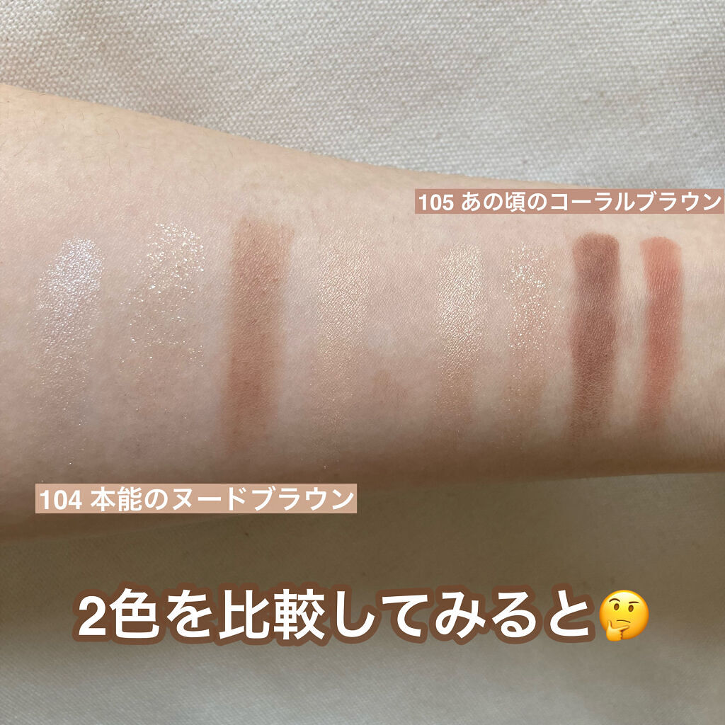 こんにちは、ななぽむです。今回は、大人気BIDOLの新作レビューです✨BIDOLTHEアイパレ¥1,980円(税込み)♡104本能のヌードベージュ104は、スウォッチでも分かるように、かなりヌーディな色です🙆🏻♀️パーソナルカラー問わずに使...