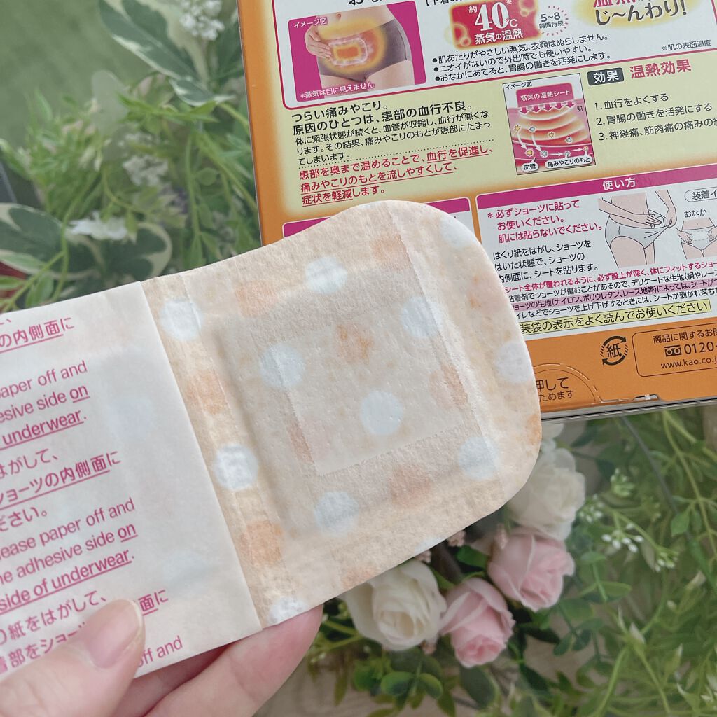 - 無香タイプ 下着の内側面に貼って、おなかや腰を温める医療機器。 心地よい蒸気の温熱が、おなかや腰を深く温め、血行を促進します。 約40℃*蒸気の温熱が5~8時間持続