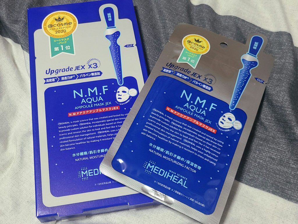 MEDIHEALのN.M.FアクアアンプルマスクJEX(Jと書いてあるのは日本版、だそう)。とにかくマスクシートが好き!!顔のサイズにちょうど良い!!目周りも、おでこも、顎も。日本人の顔の形にあわせてくれたのかなと。シートにブランドロゴが書い...