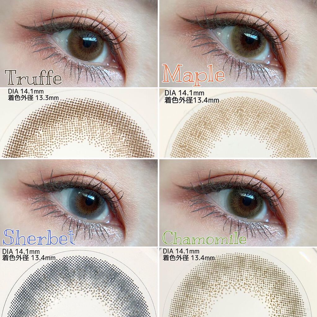 - ※2025年9月下旬〜パッケージ表記一部リニューアル。尚、これにかかる商品の返品・交換等は承っておりません。 「派手系カラコンは卒業したが、カラコン自体は卒業できない」というカラコンヘビーユーザーの声に応えた、こだわりの可愛さだけでなく、大人っぽさやこなれ感、色っぽさも叶う、全4種のカラーラインナップとなっております。 ●チャンネル登録者160万人越え大人気Youtuber、てんちむさんプロデュース ●従来*の「大きな派手盛り」ではない、絶妙なアラサー女性のニーズに応えたレンズデザイン 雫を瞳に落としたようなじゅわっと色を乗せた透明感のあるデザインで、着色直径も大きすぎずナチュラルに盛れるサイズ(DIA14.1mm/着色直径13.3~4mm) フチはふんわり滑らかなグラデーションを意識したトレンド系。 *当社ブランド内 カラーコンタクトレンズの不適正使用による眼障害の危険性等などがあります。 ●コンタクトレンズは高度管理医療機器です。不十分な洗浄・消毒など不適切なケアや、長時間・交換期間を超えた装用により、アレルギー性結膜炎、角膜感染症、角膜潰瘍等の重篤な眼障害が発生する危険性があります ●ご使用前に取扱説明書を確認してください 使用上の留意事項 ●眼科医院等を受診してからお求めください ●眼に異常を感じたら直ちにレンズ使用を中止し、お近くの眼科等で診察を受けてください ●医師の指示にしたがってご使用ください ●コンタクトレンズを装用する場合、自覚症状がなくても、眼科医院等での定期検査を受けてください ●レンズに不具合がある場合は使用しないでください