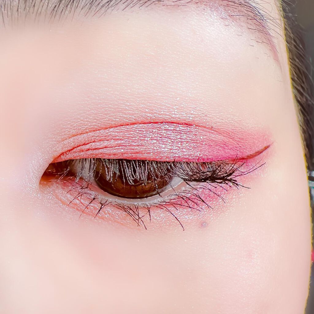 ベースに右上、目頭から黒目上に真ん中、黒目〜目尻に右下を、左上を目頭にくの字に塗ってもらいました✨ ピンクサクラよりもクールな感じで、目で見た色より私の肌では紫っぽく発色しました😍 上2つはラメはぎっしりでときめく💓 ブラウンメイクがとても苦手だけれどこれならブラウンメイク出来そう👌(かなり紫寄りですが) くすみ感は強いので苦手な方は厳しいかも…(特に真ん中) クールな印象になるので大人顔さん向けor大人顔になりたい方向けのイメージです✨