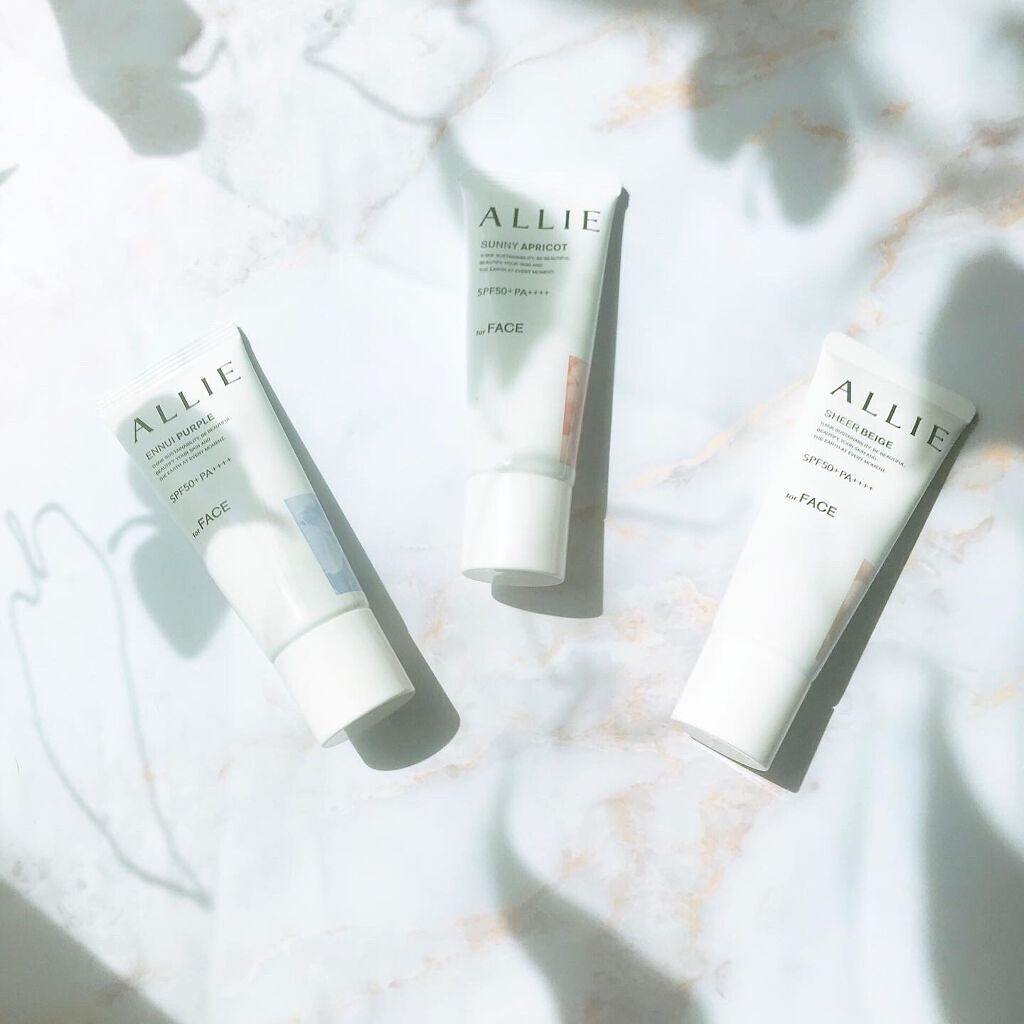 - 世界を想う 美しさつづく*1 日やけ止め おでかけも、マスクを外す機会も増える毎日に。 一部の国・地域・ビーチの規制に配慮した設計のビーチフレンドリー処方。 これ 1 本で、UV カット&顔色補整効果でクマ・くすみ・色ムラまでカバー! テカりにくく、くずれにくいノーファンデ UV*2 【ENNUI PURPLE】 くすみや毛穴をカバー 儚げな透明感のある顔印象続く 澄んだ気分を誘う 紫陽花しずく&セージの香り 【SUNNY APRICOT】 クマや毛穴をカバー いきいきとした血色感のある顔印象つづく 思わず出かけたくなる アプリコット&金木犀の香り 【SHERR BEIGE】 色ムラや毛穴をカバー 均一で抜け感のある顔印象つづく 自然で飾らない シトラスウッディ&パチュリの香り ●一部の国・地域・ビーチの規制に配慮した設計の「ビーチフレンドリー処方」 ●SPF50+・PA++++ ●汗・水 こすれに強く落ちにくい フリクションプルーフ・スーパーウォータープルーフ ●ベタつきにくい感触がつづく ●テカりにくくキレイな肌仕上がりがつづく ●環境に配慮した素材を使用したパッケージ採用 ●美容液成分(保湿)ヒアルロン酸Na配合 ●顔用 ●普段のメイククレンジングで落とせる ●マスク・タオル等につきにくい ●化粧下地効果 *1 スキンケア効果またはメイクアップ効果による肌仕上がりのこと *2 ファンデーション未使用時でも、自然なベースメイクが仕上がる日やけ止めのこと *3 チリ・ほこり・PM2.5・花粉等すべての微粒子汚れの付着を防ぐわけではありません 01:ENNUI PURPLE パープル 02:SUNNY APRICOT アプリコットピンク 03:SHEER BEIGE ミルキーベージュ