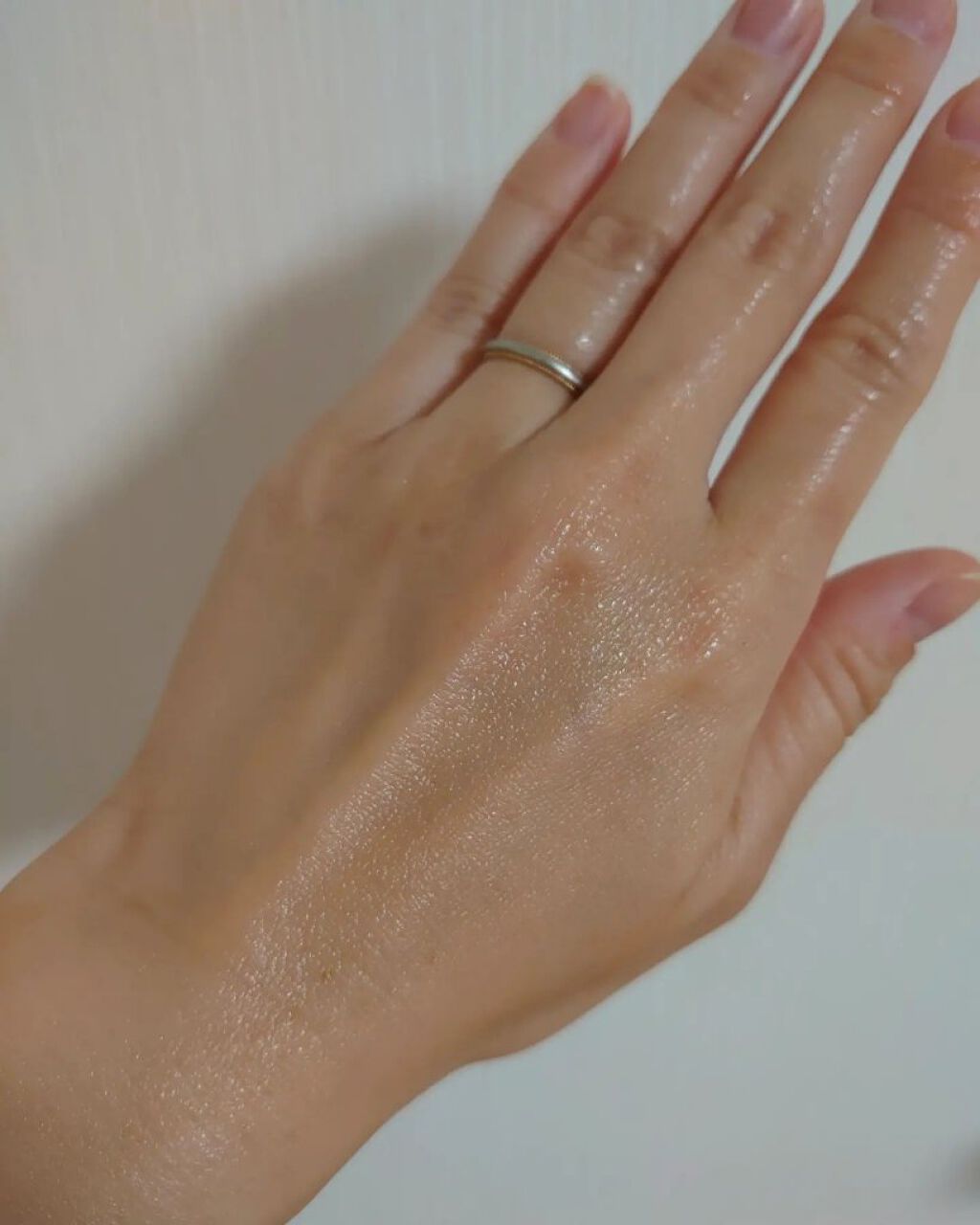 そこそこ広範囲にスプレーされ、ピタッと肌に密着する感じ。 シュッとするだけでいい手軽さがめちゃくちゃ便利👍 スプレー直後は濡れているもののすぐ乾きベタつきはなし👌 肌がつるんとしたのがわかるので、ムラがあってもすぐ気付けていいです。 スプレー缶でないので、捨てるときの簡単さも利点かと思います。 千円以下で買えることも含め、私は気に入ったので詰め替えのストックも購入済み‼️