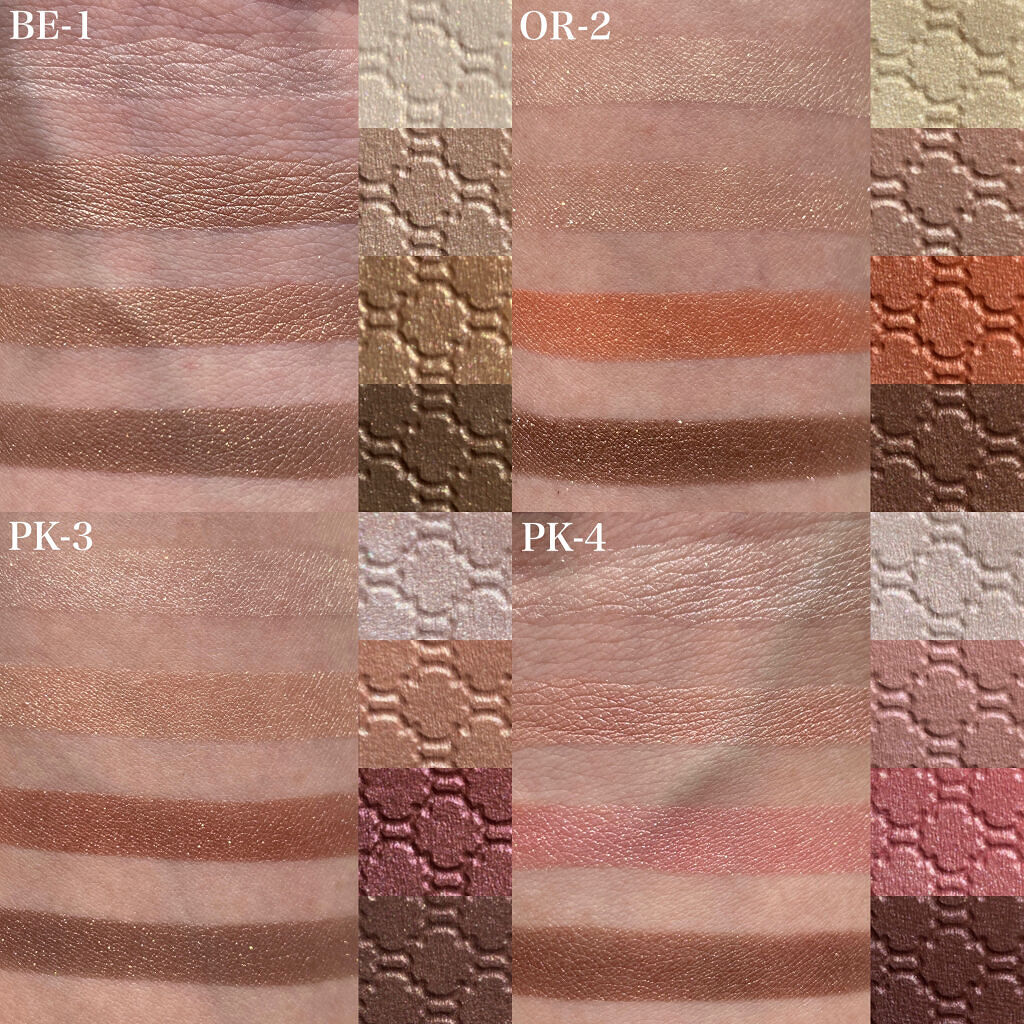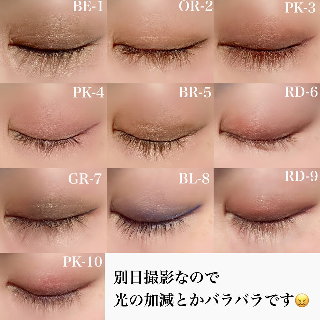 - <BE-1 ライトベージュ系> タルク、ミネラルオイル、水添ポリイソブテン、合成金雲母、ジメチコン、トリエチルヘキサノイン、 (ビニルジメチコン/メチコンシルセスキオキサン) クロスポリマー、ジフェニルシロキシフェニルトリメチコン、 (HDI/トリメチロールヘキシルラクトン) クロスポリマー、セスキステアリン酸ソルビタン、トコフェロール、ヒアルロン酸Na、PET、イソドデカン、キャンデリラロウ、シリカ、スクワラン、パラフィン、マイクロクリスタリンワックス、ラウリン酸亜鉛、リンゴ酸ジイソステアリル、酸化スズ、メチルパラベン、グンジョウ、マイカ、酸化チタン、酸化亜鉛、酸化鉄 <BL-8 スモーキーネイビー系> タルク、ミネラルオイル、水添ポリイソブテン、ジメチコン、合成金雲母、トリエチルヘキサノイン、 (ビニルジメチコン/メチコンシルセスキオキサン) クロスポリマー、ジフェニルシロキシフェニルトリメチコン、 (HDI/トリメチロールヘキシルラクトン) クロスポリマー、セスキステアリン酸ソルビタン、ホウケイ酸 (Ca/Al) 、トコフェロール、ヒアルロン酸Na、PET、イソドデカン、キャンデリラロウ、シリカ、スクワラン、パラフィン、マイクロクリスタリンワックス、メタクリル酸メチルクロスポリマー、リンゴ酸ジイソステアリル、酸化スズ、水酸化Al、メチルパラベン、グンジョウ、コンジョウ、マイカ、酸化チタン、酸化亜鉛、酸化鉄、硫酸Ba <BR-5 ココアブラウン系> タルク、ミネラルオイル、水添ポリイソブテン、ジメチコン、合成金雲母、トリエチルヘキサノイン、ジフェニルシロキシフェニルトリメチコン、 (ビニルジメチコン/メチコンシルセスキオキサン) クロスポリマー、ホウケイ酸 (Ca/Al) 、 (HDI/トリメチロールヘキシルラクトン) クロスポリマー、セスキステアリン酸ソルビタン、トコフェロール、ヒアルロン酸Na、PET、イソドデカン、キャンデリラロウ、シリカ、スクワラン、パラフィン、マイクロクリスタリンワックス、ラウリン酸亜鉛、リンゴ酸ジイソステアリル、酸化スズ、水酸化Al、メチルパラベン、グンジョウ、マイカ、酸化チタン、酸化亜鉛、酸化鉄 <GR-7 ウォームカーキ系> タルク、ミネラルオイル、水添ポリイソブテン、ジメチコン、合成金雲母、トリエチルヘキサノイン、ジフェニルシロキシフェニルトリメチコン、 (ビニルジメチコン/メチコンシルセスキオキサン) クロスポリマー、 (HDI/トリメチロールヘキシルラクトン) クロスポリマー、セスキステアリン酸ソルビタン、トコフェロール、ヒアルロン酸Na、PET、イソドデカン、キャンデリラロウ、シリカ、スクワラン、パラフィン、マイクロクリスタリンワックス、リンゴ酸ジイソステアリル、酸化スズ、メチルパラベン、グンジョウ、マイカ、酸化チタン、酸化亜鉛、酸化鉄 <OR-2 ブラウニッシュオレンジ系> タルク、ミネラルオイル、水添ポリイソブテン、ジメチコン、合成金雲母、トリエチルヘキサノイン、 (ビニルジメチコン/メチコンシルセスキオキサン) クロスポリマー、ジフェニルシロキシフェニルトリメチコン、 (HDI/トリメチロールヘキシルラクトン) クロスポリマー、セスキステアリン酸ソルビタン、ホウケイ酸 (Ca/Al) 、トコフェロール、ヒアルロン酸Na、PET、イソドデカン、キャンデリラロウ、シリカ、スクワラン、パラフィン、マイクロクリスタリンワックス、リンゴ酸ジイソステアリル、酸化スズ、メチルパラベン、グンジョウ、マイカ、酸化チタン、酸化亜鉛、酸化鉄、黄4、赤226 <PK-3 バーガンディ系> タルク、ミネラルオイル、水添ポリイソブテン、合成金雲母、ジメチコン、トリエチルヘキサノイン、ジフェニルシロキシフェニルトリメチコン、 (ビニルジメチコン/メチコンシルセスキオキサン) クロスポリマー、 (HDI/トリメチロールヘキシルラクトン) クロスポリマー、ホウケイ酸 (Ca/Al) 、セスキステアリン酸ソルビタン、トコフェロール、ヒアルロン酸Na、PET、イソドデカン、キャンデリラロウ、シリカ、スクワラン、パラフィン、マイクロクリスタリンワックス、リンゴ酸ジイソステアリル、酸化スズ、メチルパラベン、グンジョウ、マイカ、酸化チタン、酸化亜鉛、酸化鉄 <PK-4 モーヴピンク系> タルク、ミネラルオイル、水添ポリイソブテン、ジメチコン、トリエチルヘキサノイン、ジフェニルシロキシフェニルトリメチコン、 (ビニルジメチコン/メチコンシルセスキオキサン) クロスポリマー、合成金雲母、 (HDI/トリメチロールヘキシルラクトン) クロスポリマー、セスキステアリン酸ソルビタン、トコフェロール、ヒアルロン酸Na、PET、イソドデカン、キャンデリラロウ、シリカ、スクワラン、パラフィン、マイクロクリスタリンワックス、ラウリン酸亜鉛、リンゴ酸ジイソステアリル、酸化スズ、メチルパラベン、グンジョウ、マイカ、酸化チタン、酸化亜鉛、酸化鉄、赤202、赤226 <RD-6 ブラウニッシュレッド系> タルク、ミネラルオイル、水添ポリイソブテン、ジメチコン、トリエチル